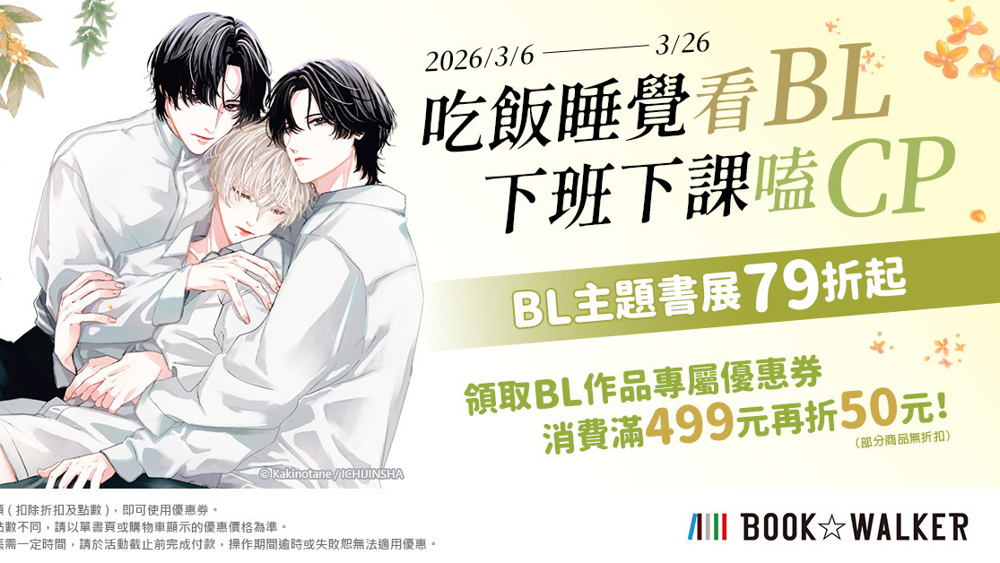 電子書平台 BOOK☆WALKER 推出「吃飯睡覺看 BL,下班下課嗑 CP BL 主題書展」,活動期間 3 月 6 日至 3 月 26 日。本次精選書目包含《異世界的處置依社畜而定》、《10DANCE》,以及《永恆的契約》、《哈利路亞寶貝... 繼續閱讀