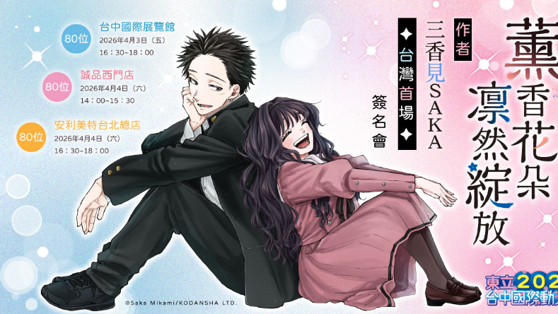 東立出版社宣布,將於 4 月連假期間邀請到《薰香花朵凛然綻放》作者三香見 SAKA 來台舉行簽名會的消息。 《薰香花朵凛然綻放》故事講述相鄰的兩所高中─集結了笨蛋學生的底層男校‧千鳥高中,與歷史悠久的貴族學校‧桔梗女子... 繼續閱讀