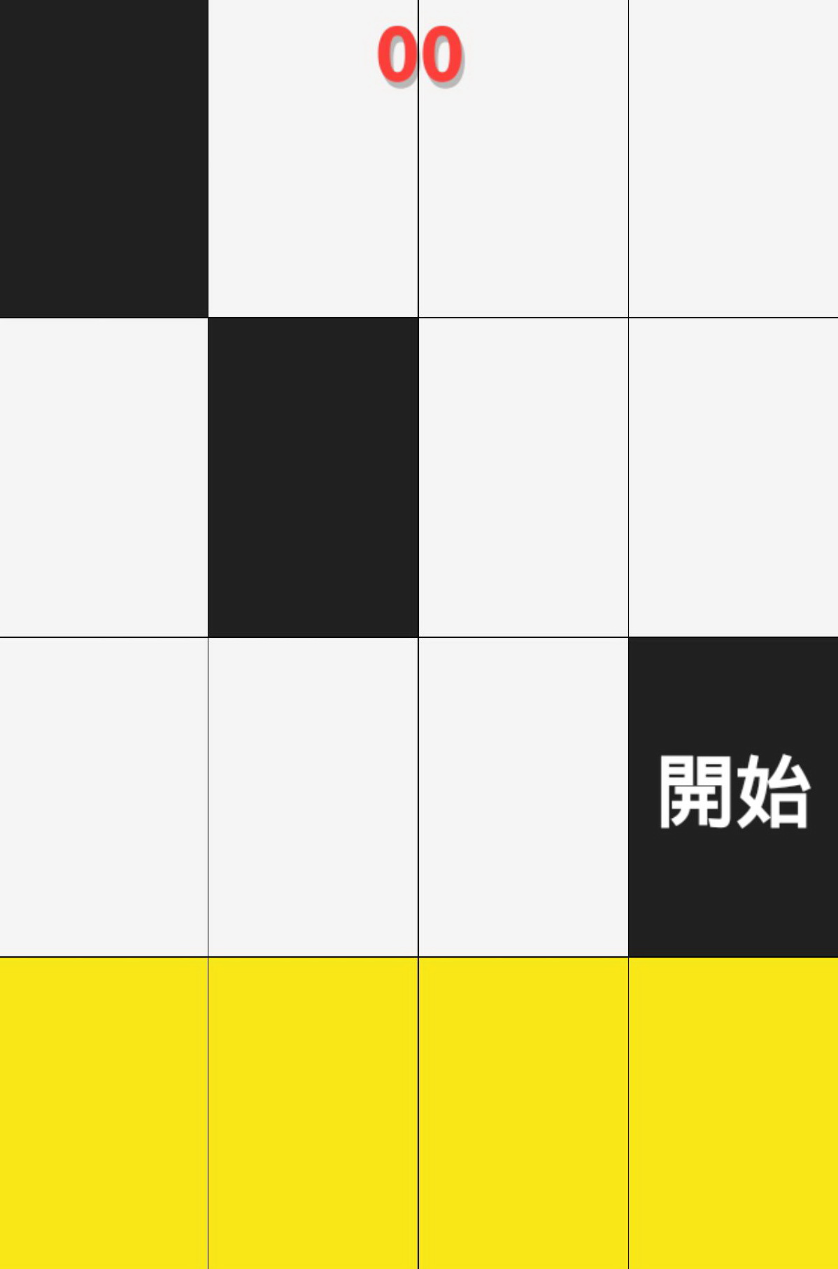 無論在什麼模式,當玩家縱持手機,就會看到畫面分成4*4共16個長方形方格。玩家所要做的就是點擊每一排中的「黑色」方塊,只要玩家成功點擊之後,畫面就會捲動並且出現新的一排方塊。