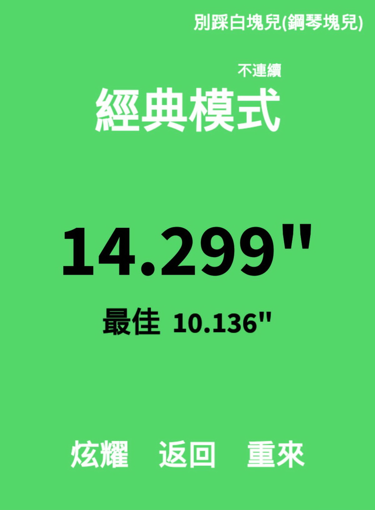 雖然每一種模式的畫面看起來都很相似,但依照模式不同,有的是會要挑戰玩家的點擊手速,也會有像是節奏遊戲的玩法,在「目標」上可是完全不一樣的。例如「經典模式」比得就是點擊一定數量的黑色方塊所耗費的「最短時間」,而「街機模式」則比較接近一般玩家所知的節奏類遊戲,是要測試玩家在不斷自動落下的方塊中能夠不中斷點擊的「持續時間」。