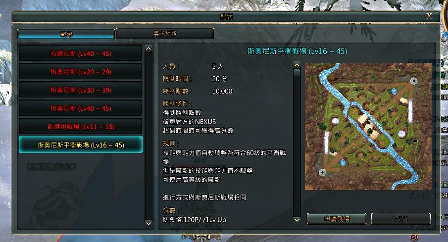遊戲中的戰場依照等級來區分,以確保入場玩家雙方的平衡,並新增【平衡戰場】,不同等級的玩家入場後,等級全部自動提升為 60 級,屆時決定勝負的,就只有原本攜帶的【魔影】的能力差異以及戰鬥技巧了。