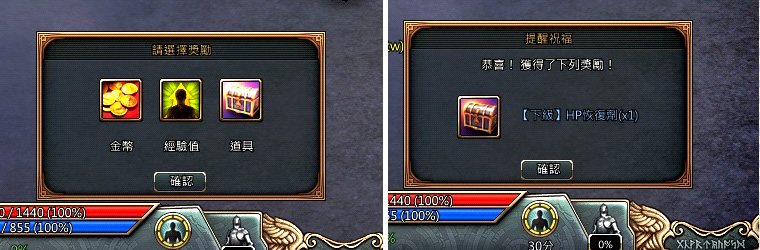 除此之外,遊戲內只要上線達到一定的時間後,即可點擊祝福按鈕,選擇【金幣】、【經驗值】、【道具】之一的祝福。官方透露,倘若玩家選擇【道具】且抽到稀有道具時,還會為玩家進行全伺服器的廣播。