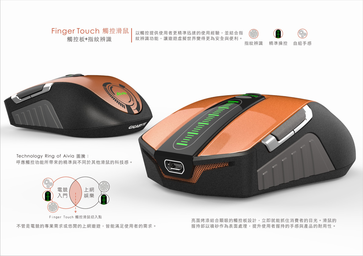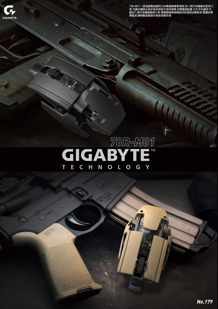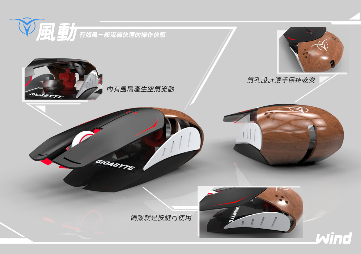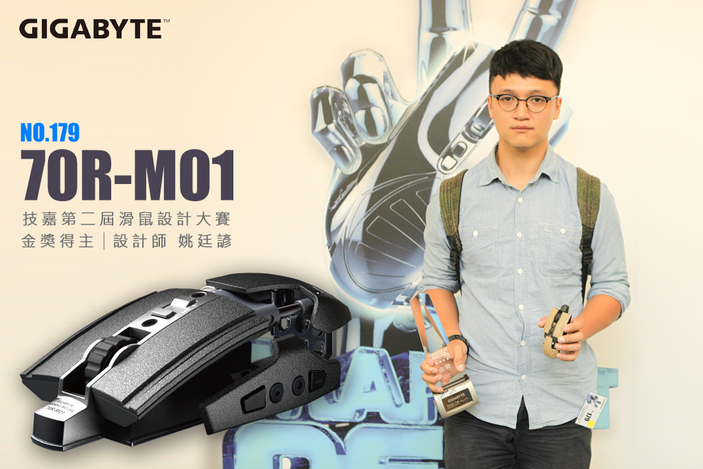 由技嘉科技舉辦的「Make It Real! 技嘉第二屆滑鼠設計大賽《電競爭霸》」活動,於日前舉辦最終決賽,並於同日下午進行頒獎典禮。本屆大賽由實踐大學校友新銳設計師姚廷諺設計的「70R-M01」奪得金獎,該作品以步槍為設計概念,具備濃烈的軍事遊戲風格,獲得評審委員一致青睞,不僅帶走新台幣 15 萬元的獎金,技嘉科技更再次「保證量產」此冠軍作品與協助行銷全世界。