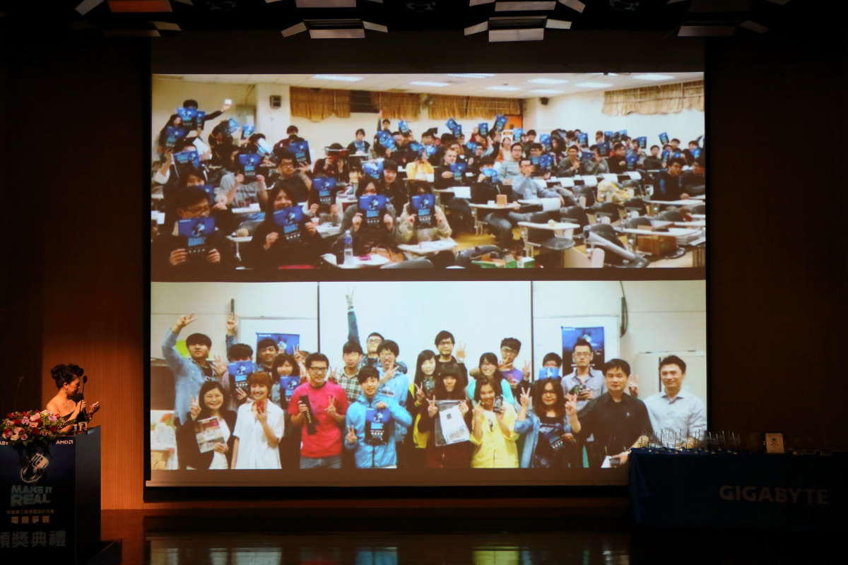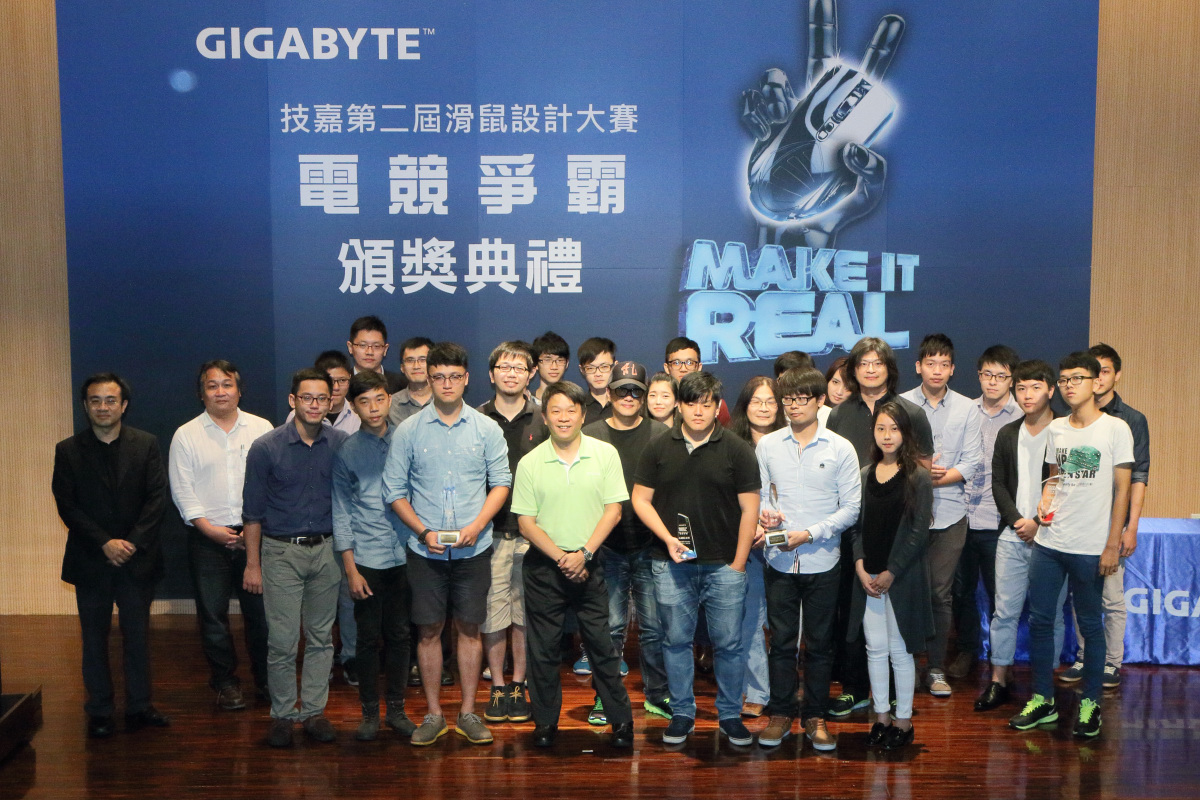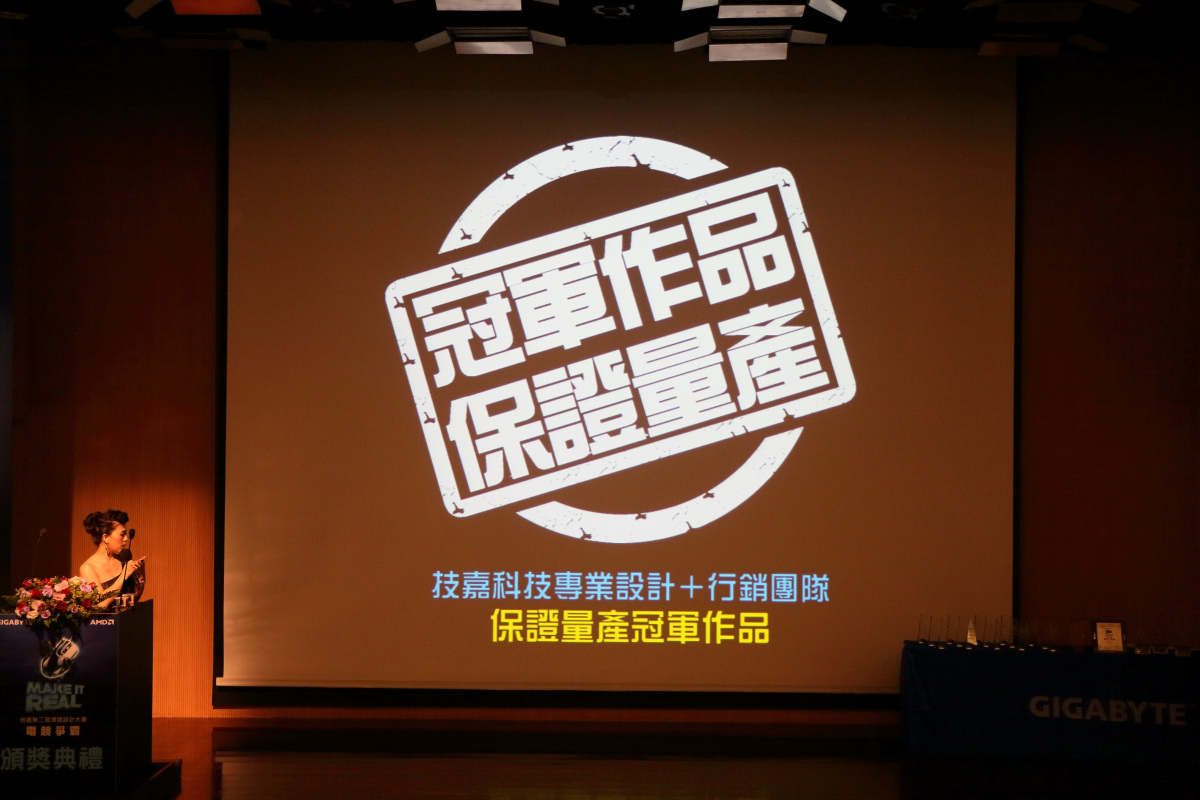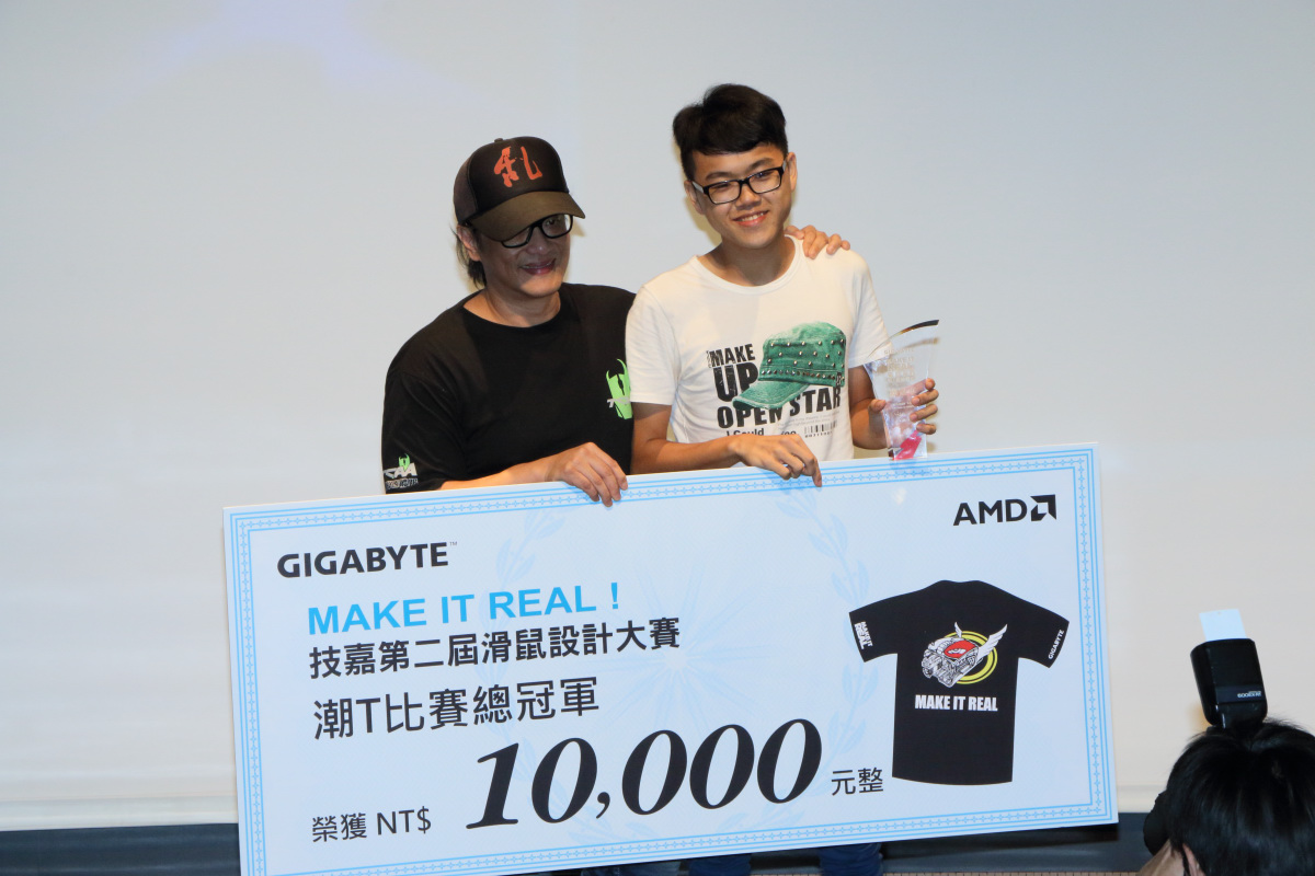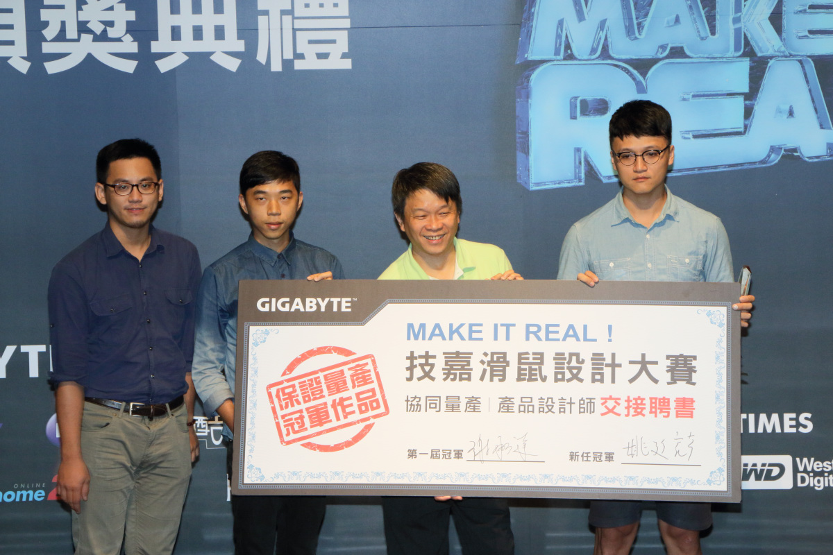 去年冠軍作品「Raptor」是由謝承達、吳彤及梁愛幃共同設計,其中謝丞達及吳彤兩人親自來到會場為參賽者打氣,還上台傳承協同量產寶座給第二屆冠軍。頒獎典禮後,技嘉科技更特別布置展覽空間,展示 15 件入選作品的介紹看板與參賽者精心打造的滑鼠模型,另外還布置了去年冠軍量產作品「Raptor」專區,讓現場的媒體與參賽者應援團共同見證「Make It Real」的里程碑。