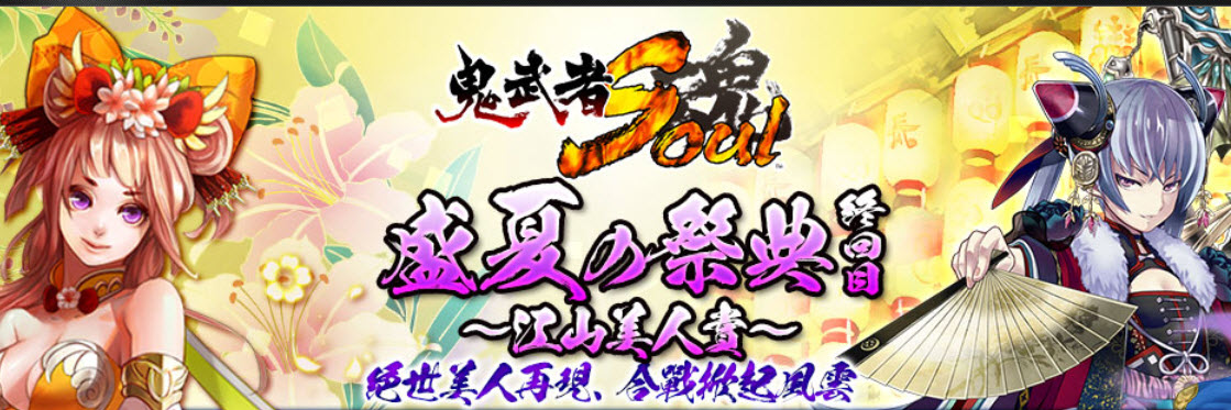 經過初回與二回目的「盛夏の祭典」活動之後,7 月 15 日將展開終回目「江山美人賞」三大回饋活動。在 7 月 22 日前,第一伺服器玩家只要完成「西國百花繚亂繪卷」獲得小喬武將卡後,升等成 G5 時可獲得:萬能進化祭品 G5、武將強化祭品 (桐)、神石 (極),而升等至 G8 時則可獲得萬能進化祭品 G7、武將強化祭品 (桐)、神石 (極)、金鑰匙。另外,一、二服的玩家在 7 月 22 日維修前,各國合戰前 10 名玩家將可獲得「十強爭霸戰」活動獎勵:赤魂、黃魂、金鑰匙、大金山等。另外,一、二服的玩家只要完成指定事件,就可獲得「事件搜查線」活動獎勵:萬能進化祭品 G6、黃魂活動獎勵。想要一口氣補進強化道具與魂籤的玩家,把握終回目的活動時間喔!