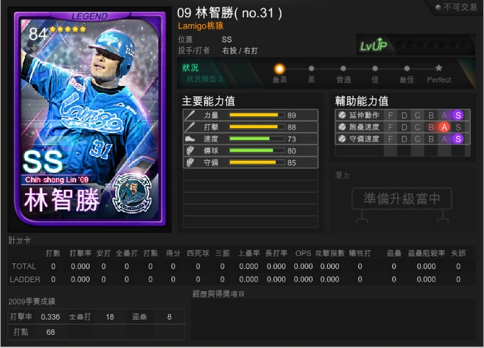 其中,本次改版最特別的球員卡為大師兄「林智勝」,將新增「傳說卡」及「紅卡」球員卡,「林智勝」2009 年共出賽 108 場,繳出 31 支全壘打,打擊率達 3 成 3,榮獲當年的全壘打王、游擊手最佳 10 人、銀棒獎…等殊榮,優異的能力,將幫助玩家於場上取得更多勝利。