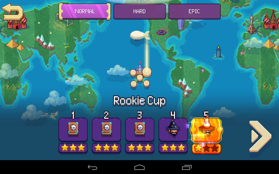 每一大關都由 5 小關所構成,第一個新手盃中有 3 關是新手教學