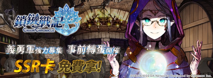 由移動怪獸代理的 SEGA 旗下手機遊戲《鎖鏈戰記》繁體中文版上市在即,第二波活動「事前轉蛋」今日開跑。官方表示,參加事前轉蛋活動每天共三次轉蛋機會,可持續到轉出滿意的角色為止,有機會搶先獲得《鎖鏈戰記》SSR「破壞魔人蘿蕾塔」、SSR「候補生伊莎貝兒」、SSR「沙漠之鷹加法爾」、SSR「沙漠的偶像莎夏」等卡片。