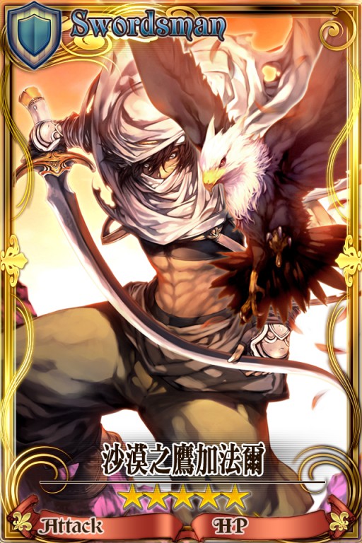 年輕湖都的劍士。別名沙漠之鷹。以鷹匠為職,能自由自在地驅使獵鷹,但別名的由來並非如此而已,而是他本人劍術高超、緩急自如,就像獵鷹一樣靈活矯健。