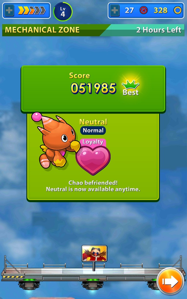 當玩家在時間內沒有到達加時地點的話,就會自動傳送到終點,此時終點會出現關卡中被救出來的動物,玩家要一隻一隻的以滑動操作的方式送上熱汽球。送上去的越多就可獲得越高的分數。