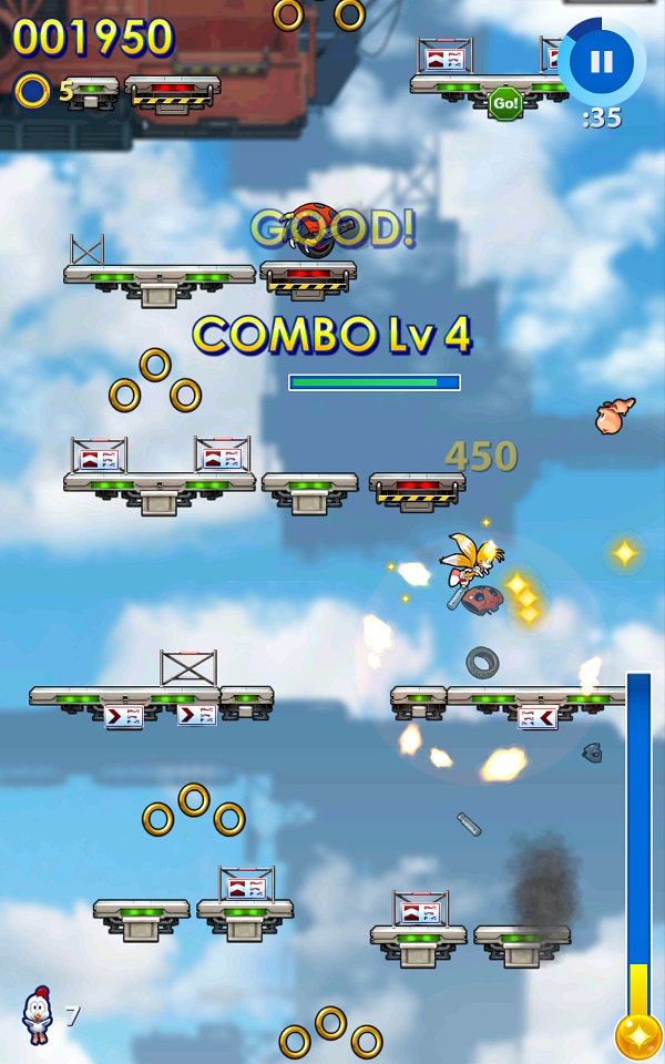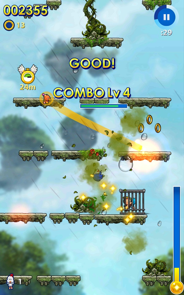 中玩家要操作《音速小子》系列中的著名角色不停的往上跳躍來拯救小動物並獲得金環,以下就來看看本作的遊戲內容吧。