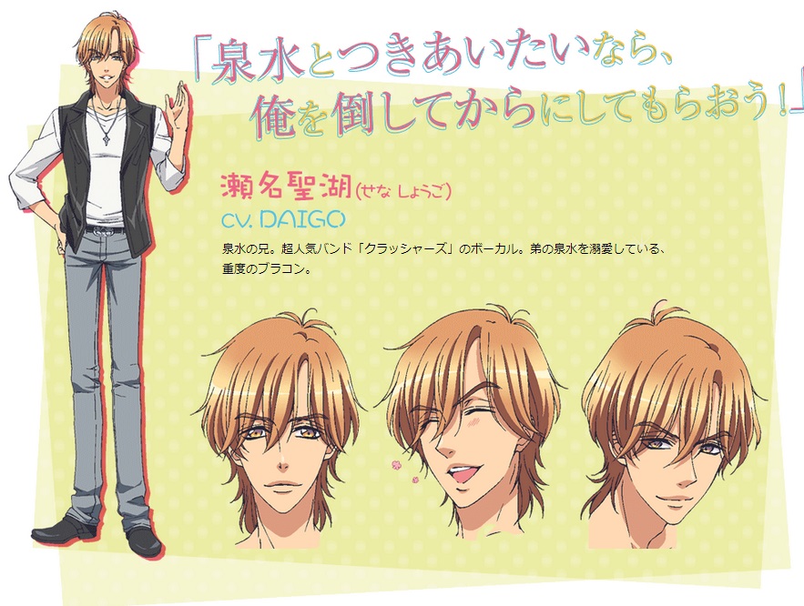 講得直白一點,如果不去注意到配音跟背景資料設定性別那一欄寫的是「男」的話,就相當可能誤以為主角泉水就是女孩。動作柔媚,神態中帶點嬌羞,無論生氣、高興的神情處處都散發著少女的氣息,加上故事中又常以女裝現身,所以設定上是男男相戀,但是簡單的把它當成一般戀愛故事來看好像也沒有甚麼太大的問題。
