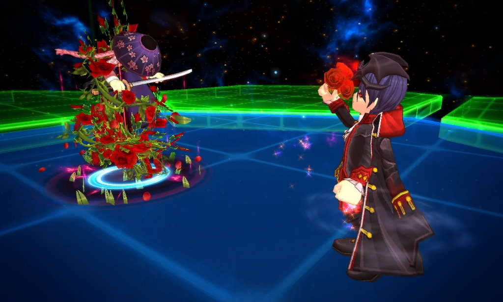 「生長的玫瑰」召喚從地底竄出的玫瑰藤索,讓多數敵人被纏繞後無法移動。「吸血」在一瞬間吸取前方多數敵人的體力,如同時擊中多目標時的效果會更為顯著。