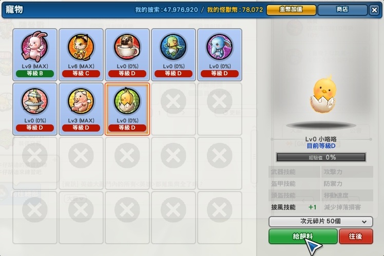 寵物系統目前共有「八種」不同數值代表著的寵物,玩家不但能夠使用英雄碎片來提升寵物們的等級外,只要寵物等級達到最高階時,玩家還可以使用合成來讓寵物的「階段等級」做提升哦!只要「階段等級」越高的寵物,則能夠讓英雄們提升更高的能力值,而等級到達一定程度的寵物也會改變為更可愛、強壯的外觀,就讓我們一起在英雄大亂鬥中培養出最強力的寵物哦!
