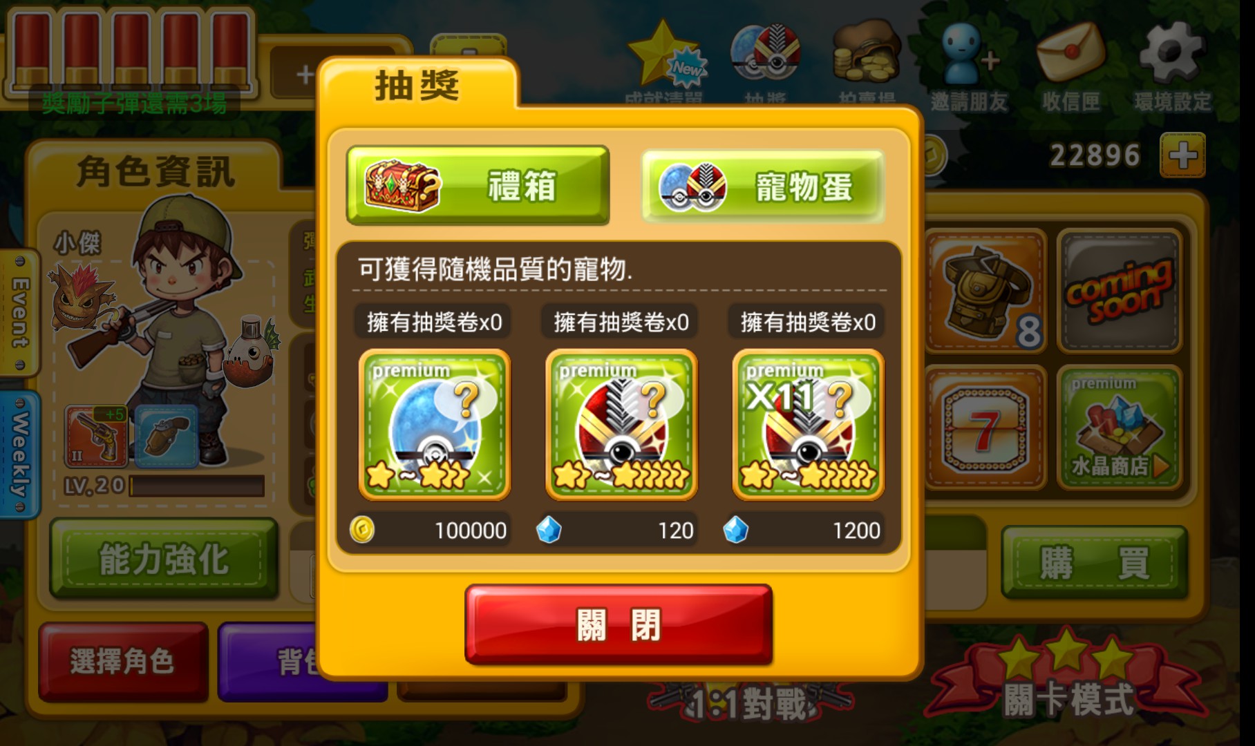 可花費金幣或水晶來購買寵物蛋
