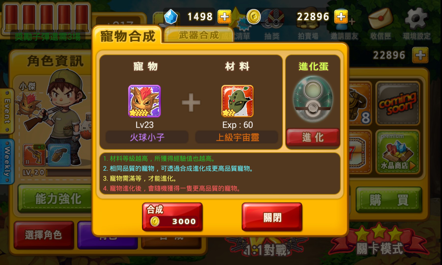 可透過合成使寵物提升成長