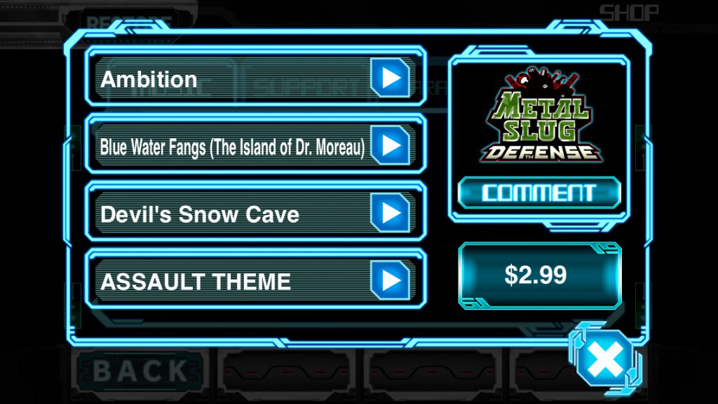 越南大戰 DEFENSE(METAL SLUG DEFENSE)》中挑選出的 8 首樂曲。新聞稿內表示,今後官方亦會繼續增加 SNK 經典樂曲到遊戲中,並提供全新功能的升級。
