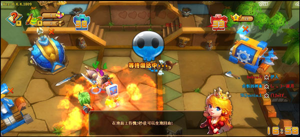 當小勇士的血量損失時,只要在地面上持續 3 秒後就能回血。如果不幸被擊殺,玩家將會回到己方城堡等待復活