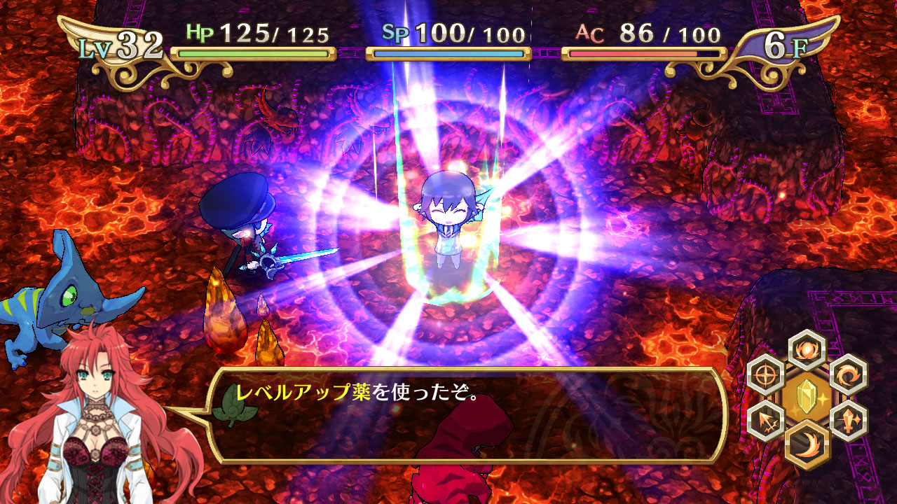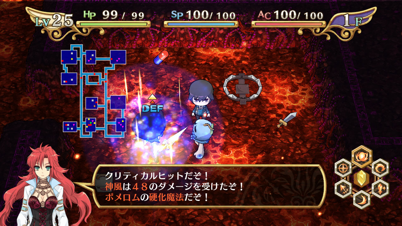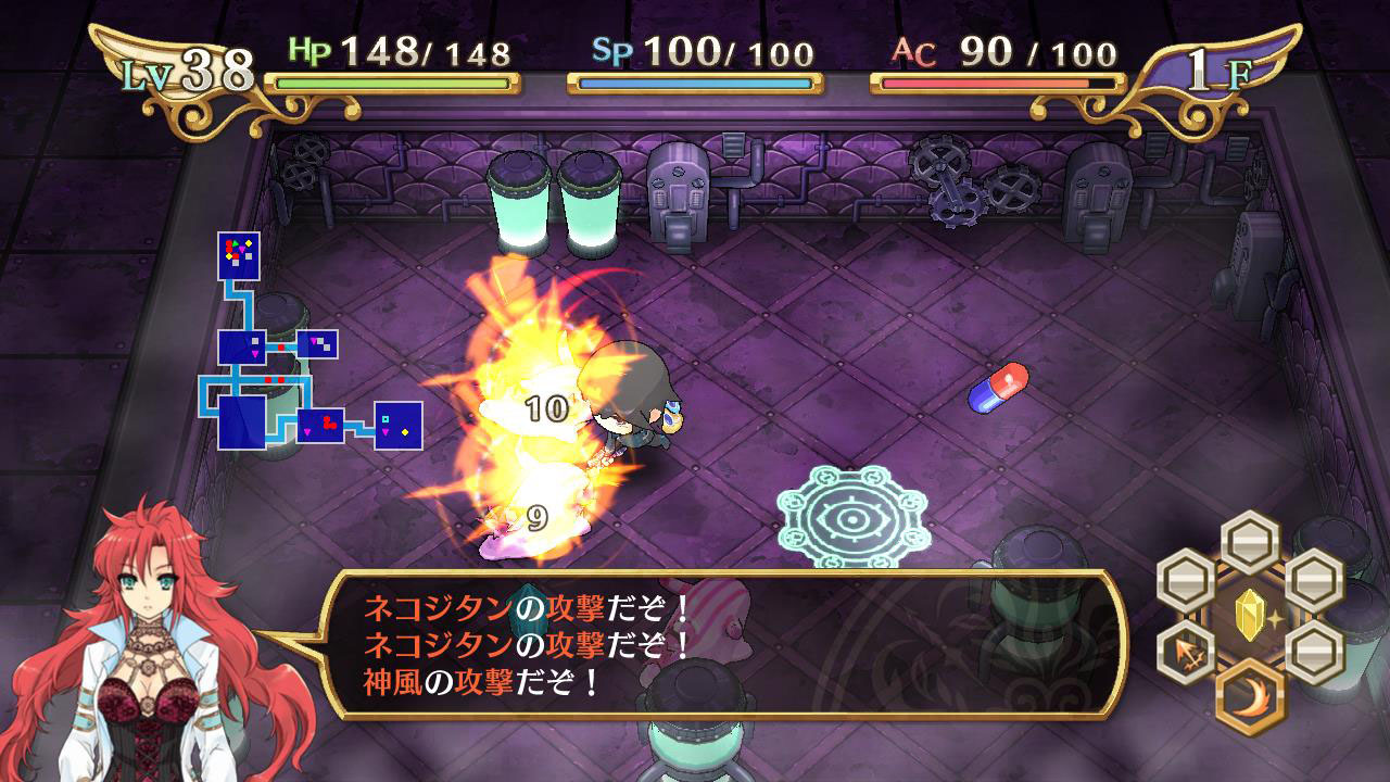 在迷宮裡、以大幅強化主角能力的 “轉神” 系統為首、能夠提供多樣化的效果的 “道具”、使用可附加自訂編輯的 “武具”、來突破阻擋於面前的敵人。