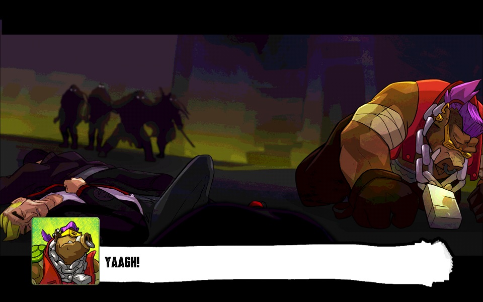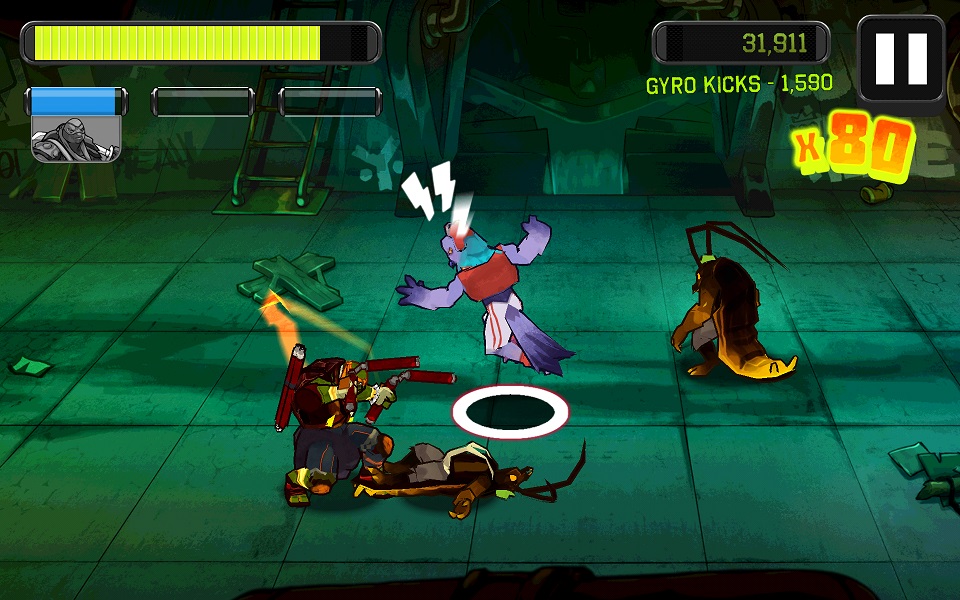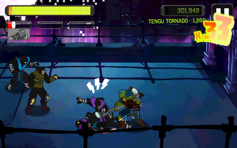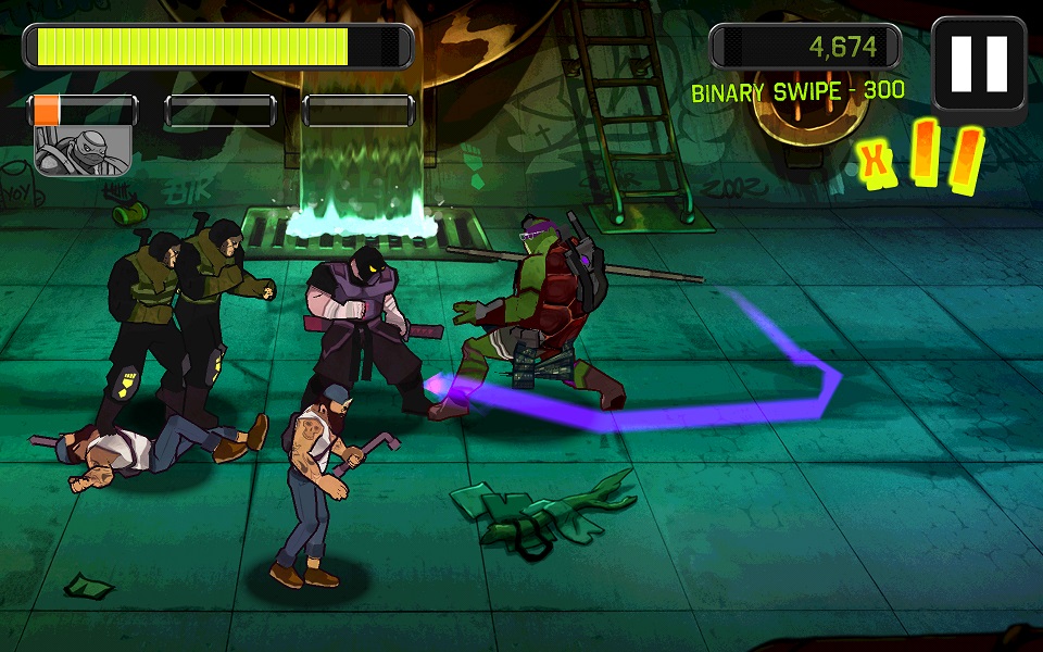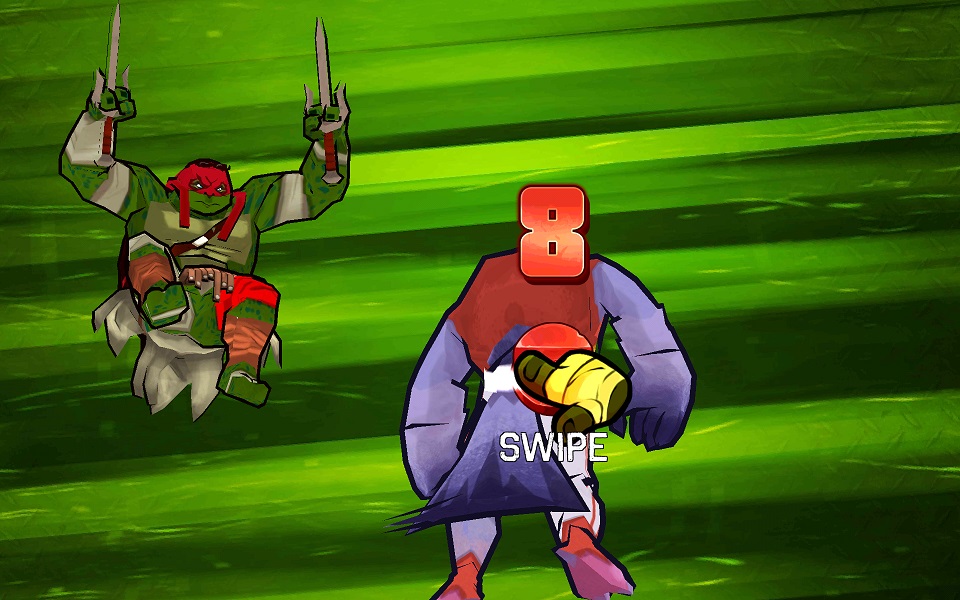 就喜歡忍者龜的筆者來說玩起來還算有趣(雖然還是比較喜歡以前的造型),而且在中後盤的關卡也開始有了挑戰性,除了破防之外,什麼時候要用震暈攻擊跟撈擊等都要考量,而大絕招因為可以讓全畫面的敵人暫時暈眩的關係,所以相當便利又帥氣。