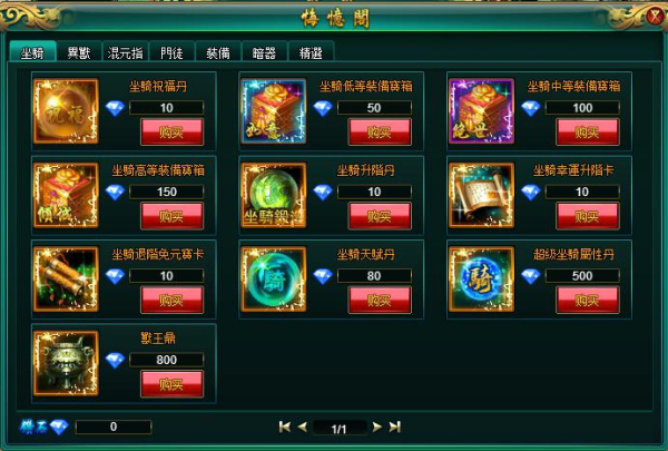 「悔憶閣」中,只要大俠有足夠的鑽石,就可以換取自己提升修為的靈丹妙藥、秘笈裝備