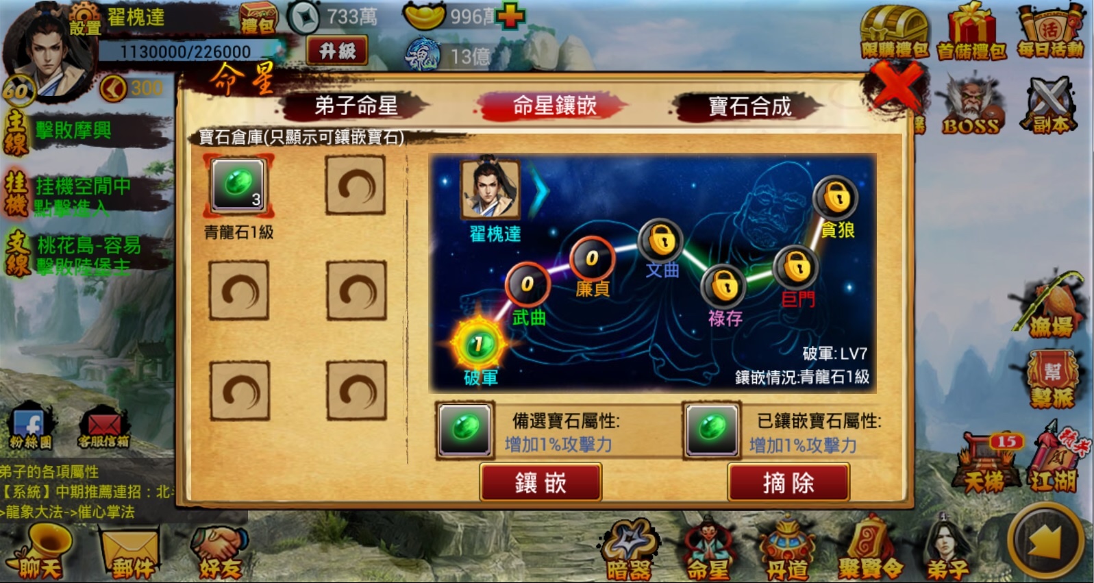 【獎勵內容】:88 元寶、50000 銀兩、400 紫色俠魂(招募紫色高級弟子寶物)、五級寶石 *3 、武魂 *50000、20 點行動力。