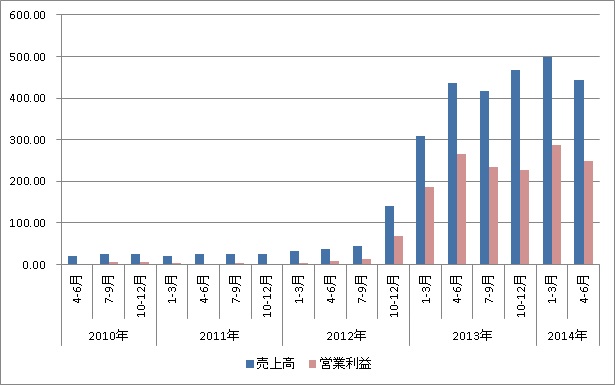 雖然主力遊戲《龍族拼圖》依然人氣高漲,維持著高銷售‧收益的水準。但若是只看 2013 年~ 2014 年的表現,就會發現收益從爆發性增長進入到穩定期。