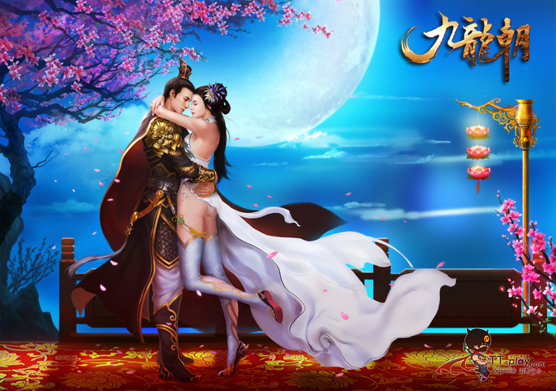 九龍朝》在月下情緣活動中,玩家可看到美麗月景,和時而劃過天際的流星,玩家將處在一個浪漫的情境當中,尋找可以陪同一起賞月的異性玩家,在月下情緣活動中,系統自動將會卸下戰甲和坐騎,換上一套休閒衣裳,在賞月過程裡,可藉由吃月餅和放煙火,在短時間內獲得大量經驗獎勵,還能一邊猜謎答題賺取元寶喔!