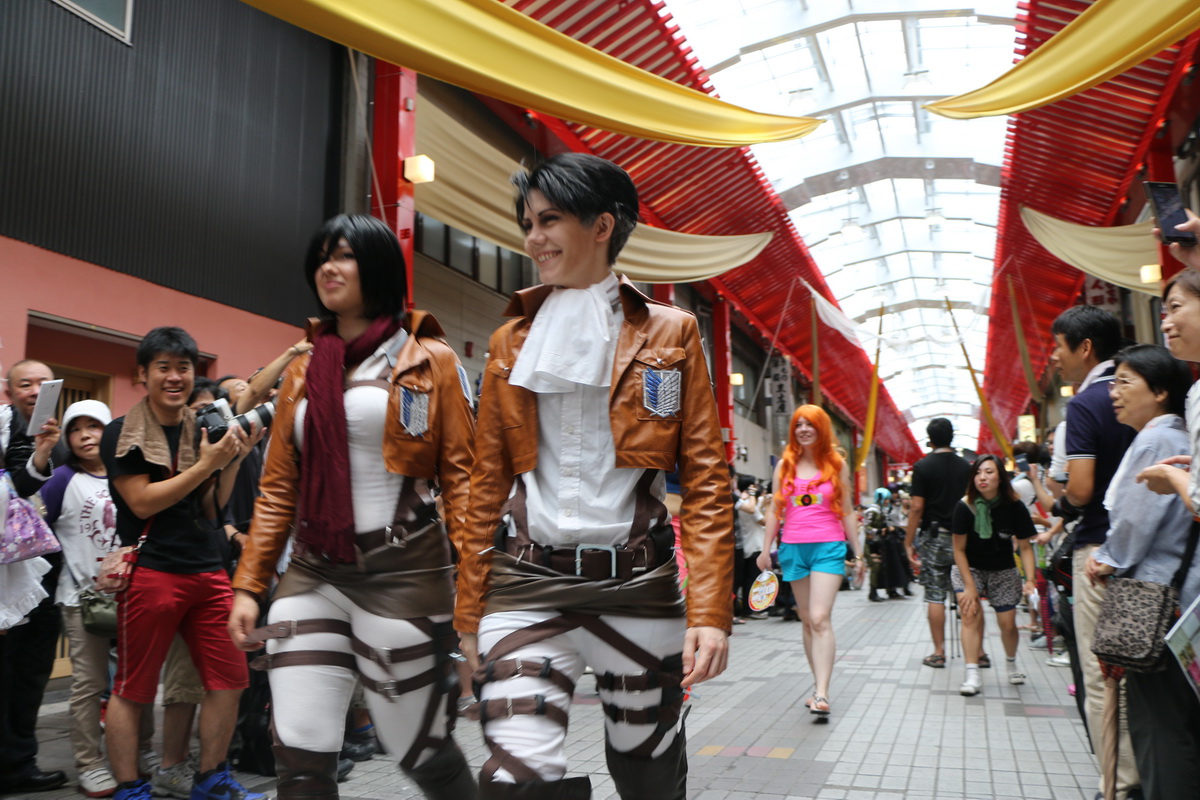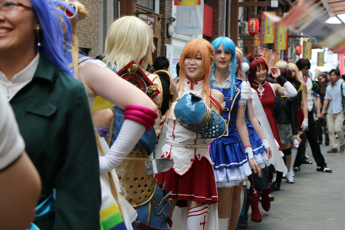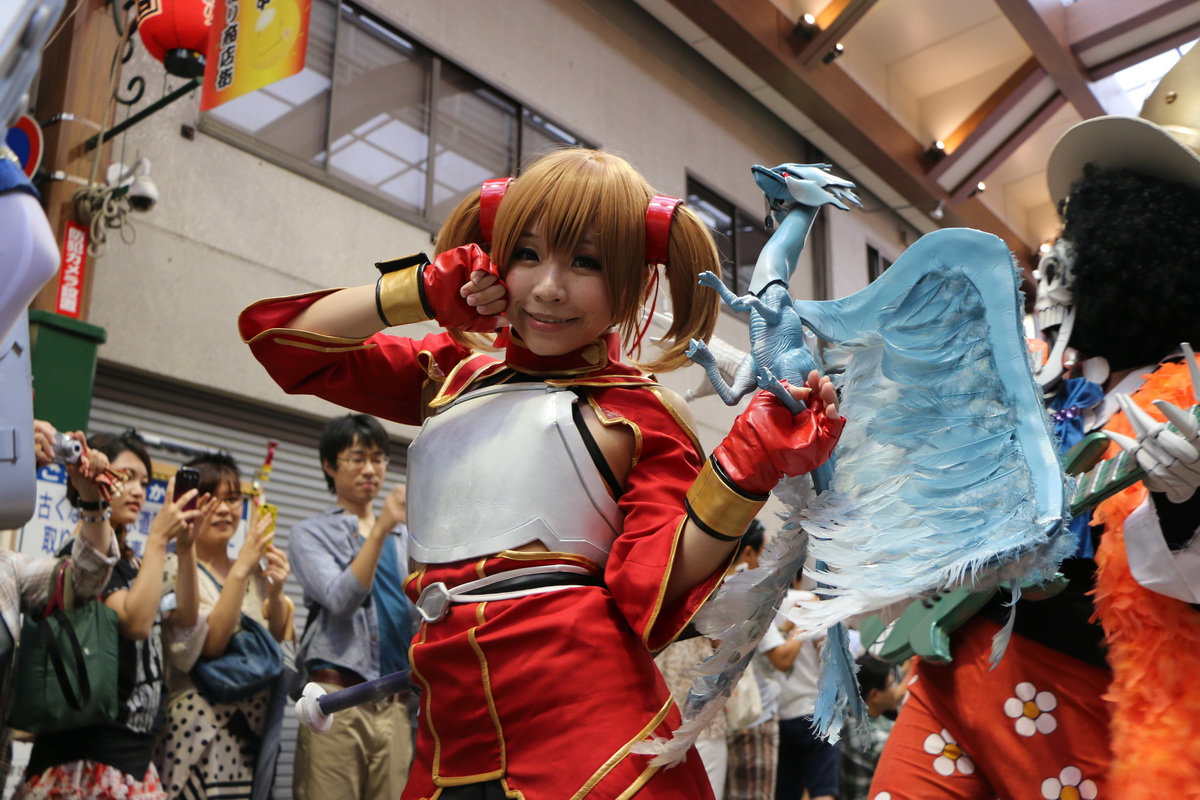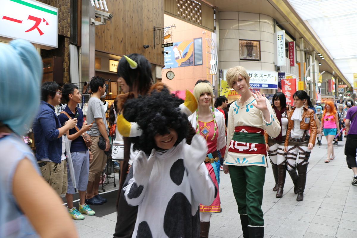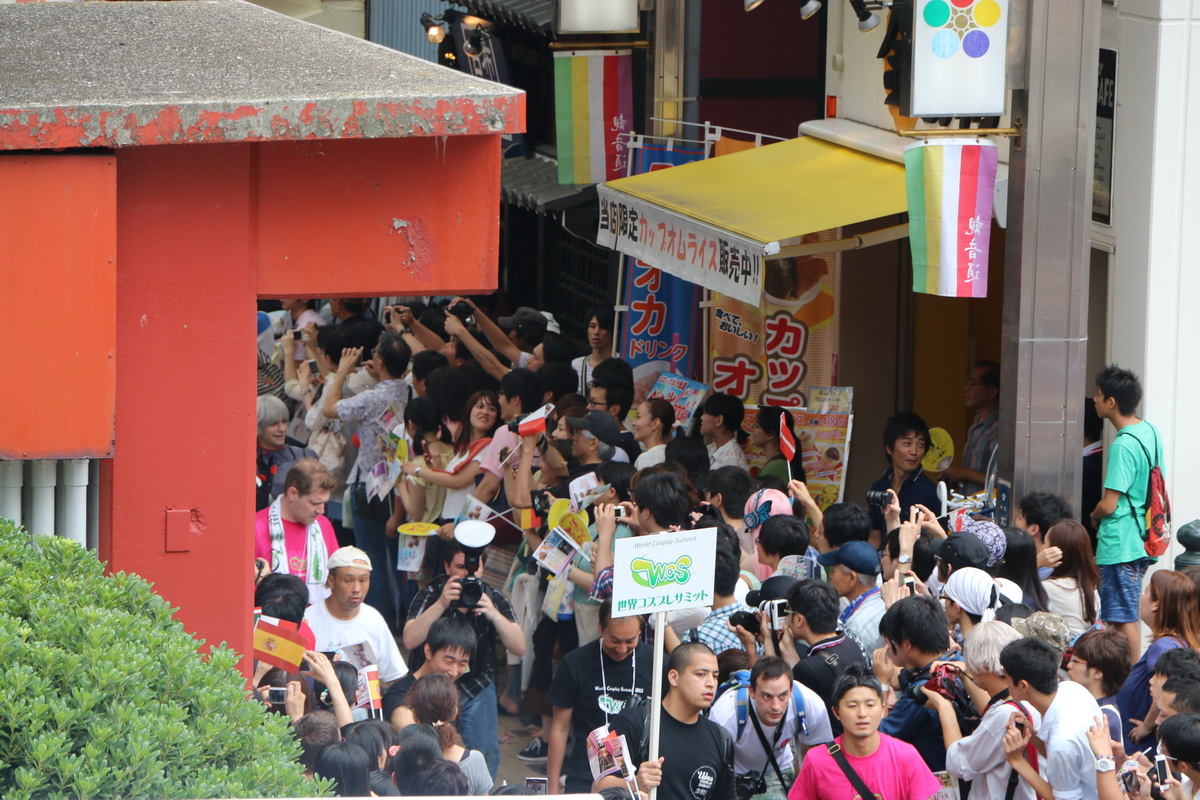 作為 2014 WCS 世界 Cosplay 高峰會(World Cosplay Summit)活動的一環,今(3)日於名古屋大須商店街內舉辦了一場 Cosplay 大遊行。這場大遊行由昨日剛出爐的 2014 世界 Cosplay 大賽冠軍俄羅斯代表領隊,從大須觀音寺內出發,包括來自各國的代表隊伍,共計有約 2000 名的 Coser 一同繞行商店街,現場熱鬧非凡。