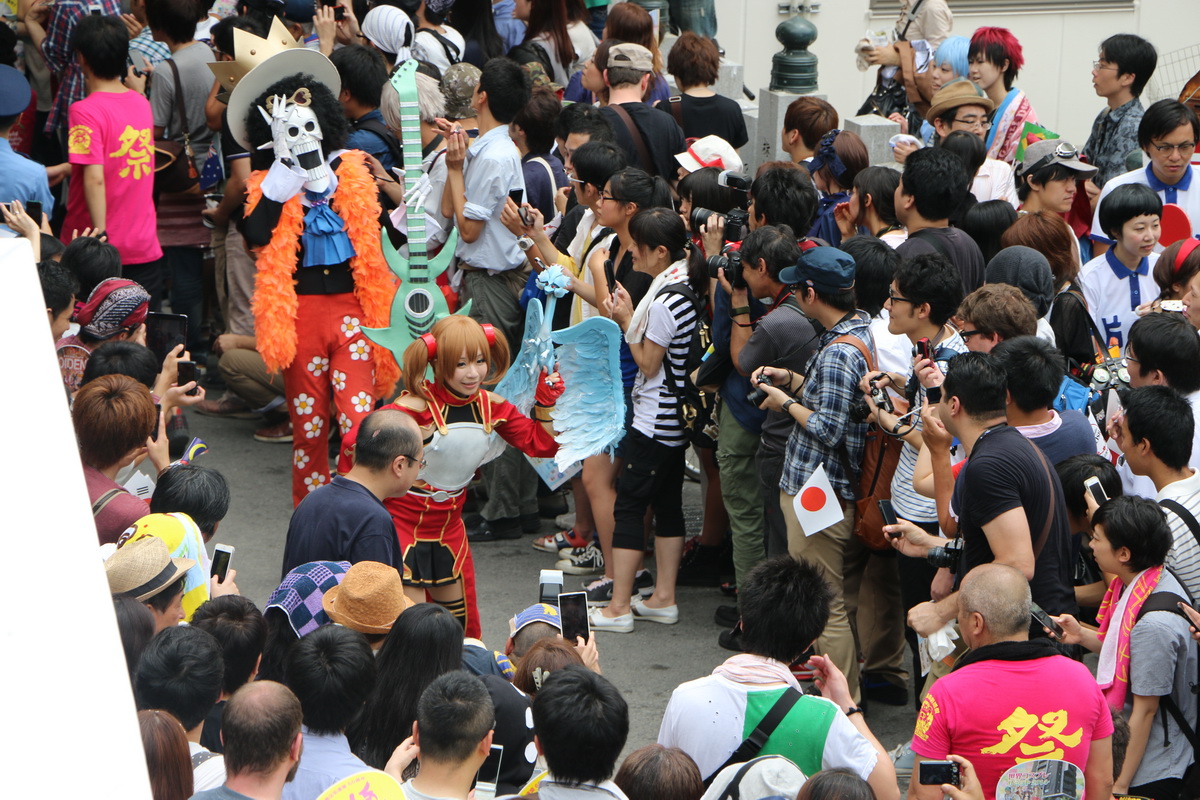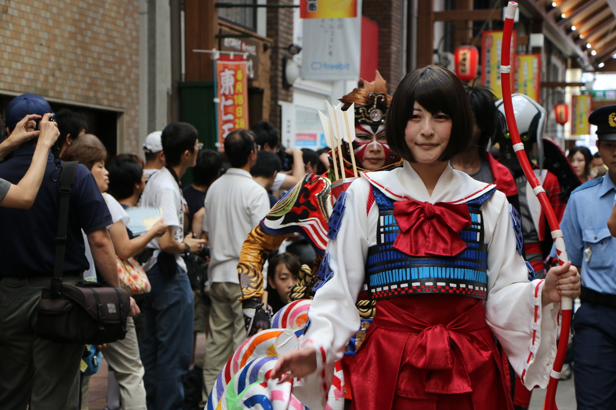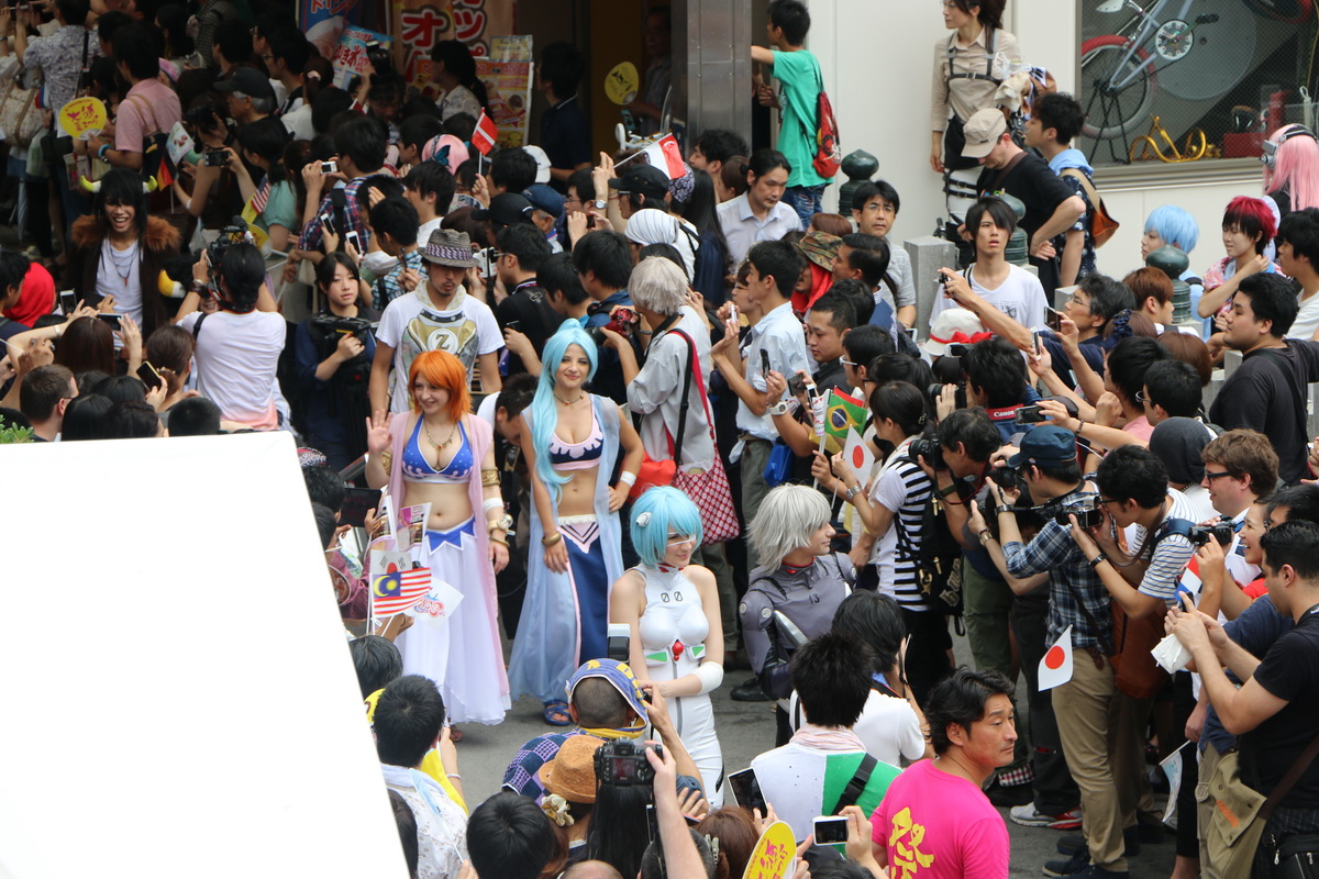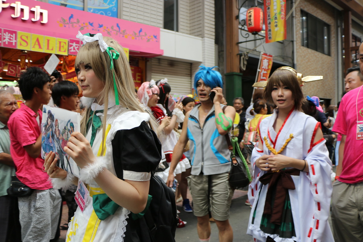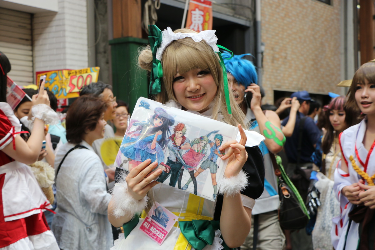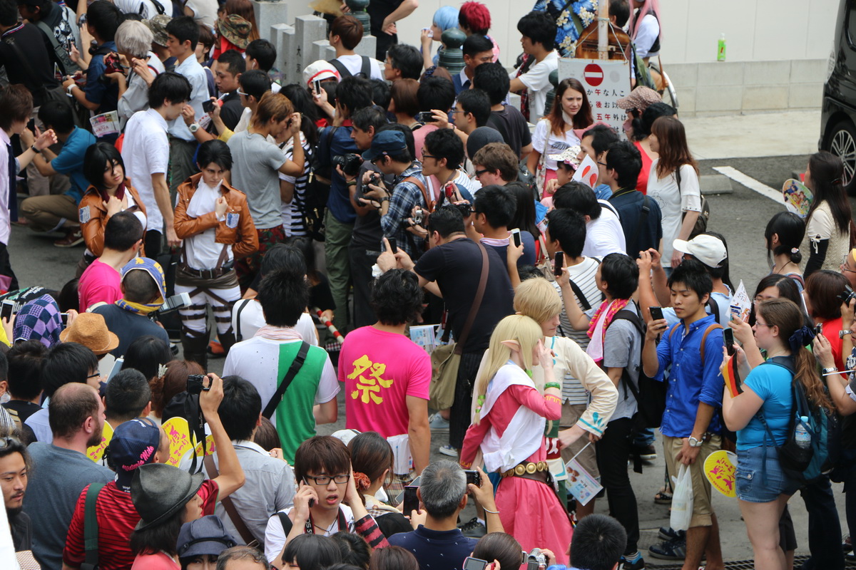 作為 2014 WCS 世界 Cosplay 高峰會(World Cosplay Summit)活動的一環,今(3)日於名古屋大須商店街內舉辦了一場 Cosplay 大遊行。這場大遊行由昨日剛出爐的 2014 世界 Cosplay 大賽冠軍俄羅斯代表領隊,從大須觀音寺內出發,包括來自各國的代表隊伍,共計有約 2000 名的 Coser 一同繞行商店街,現場熱鬧非凡。