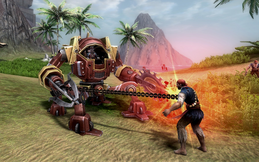 「收割者」是艾森赫特陣營第一架陸空雙棲戰爭機械,擁有強大的近戰能力,手中鋒利的鋸齒能極速運轉切割,帶給敵人巨大的傷害。而另一手裝備的鐵爪,則能夠鎖定逃至遠處的敵人,將其牢牢抓住並拉至面前狠狠地蹂躪一番!「收割者」背後同時安裝了一個螺旋槳,當情勢不利時可以快速轉動並飛至空中,同時,也能夠針對空中敵人進行攻擊,使對手無所遁形!