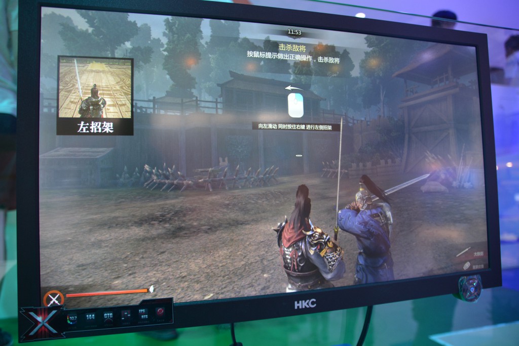 另外,就連防禦部份也需要這種類體感操作,玩家必須根據敵方發動攻擊的方向,按住滑鼠右鍵向左、右移動滑鼠以進行招架。比起「一騎當千」的快感或是五光十色的特效,本作更強調這種一對一單挑的特色。