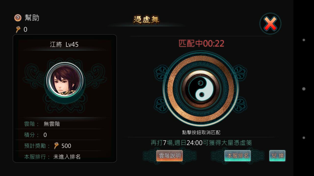 憑虛舞」系統將會自動進行配對尋找對手