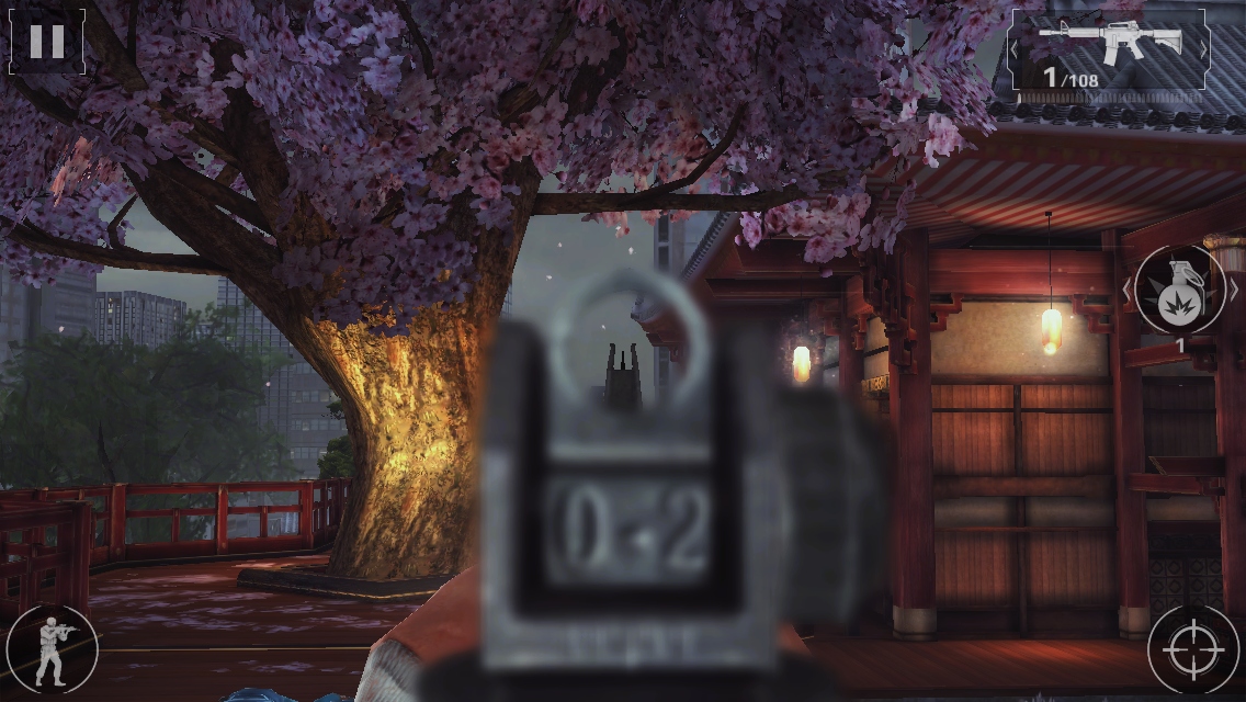 這一次遊戲操作基本是設置為虛擬按鍵觸控,左下角方向鍵控制人物移動,右下角則是開火鍵然後藉由手指劃動畫面調整射擊視角。由於以手指同時調整準星與發動攻擊不免過於繁瑣,遊戲中也另外設定可以利用陀螺儀感應的操作方式配合玩家戰鬥,並可自行調整感應的靈敏度。