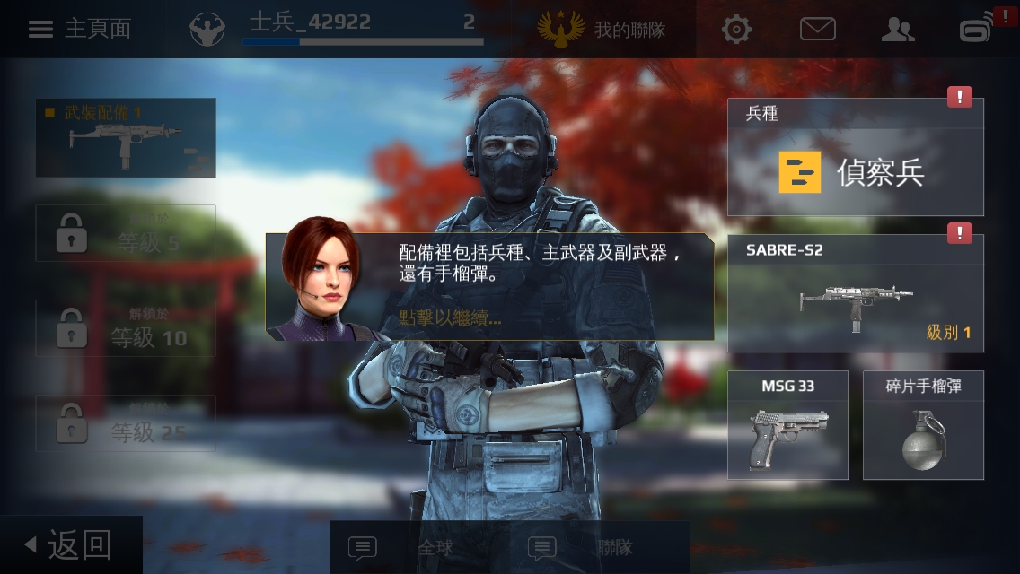 工兵、衝鋒兵、偵查兵、狙擊手,遊戲內玩家可以依照喜好選擇不同的兵種,像是強化回復還是擅長近距離戰鬥等,每種兵種有其特性與擅長的戰鬥方式,並設計有技能樹,玩家可經由消耗戰鬥升級後取得的技能點數來強化能力。
