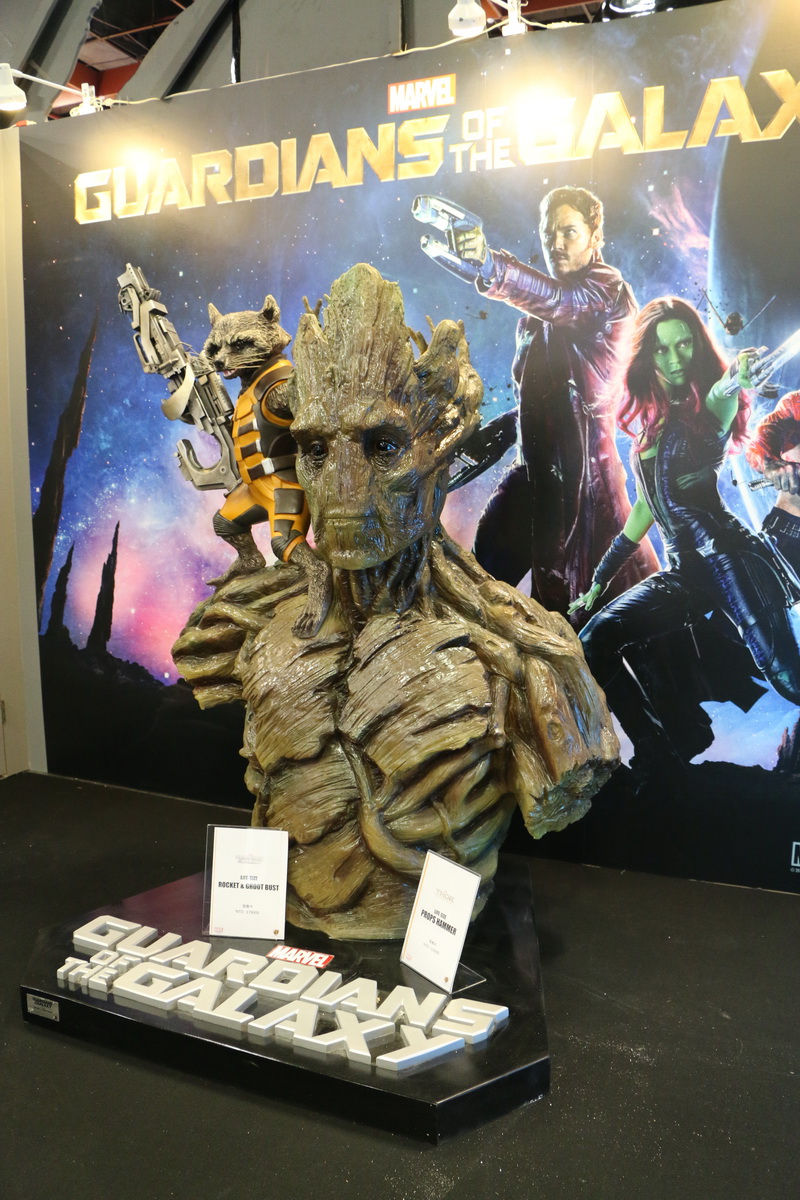 漫威官方表示,本次攤位祭出十座 1:1 比例大小的模型,包括鋼鐵人馬克、鋼鐵愛國者、戰爭機器、美國隊長、雷神索爾、星際異攻隊樹人和火箭等,連蜘蛛人都加入集結行列。另外還有多款尚未上市的漫威系列模型,準備讓大家一睹為快。