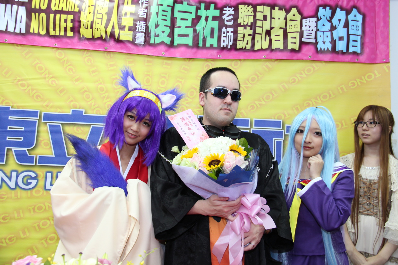 榎宮祐:小說劇情中有個勢力叫做東部聯合,其中設定很像日本,但是又融入了其他亞洲國家風格,而我上網檢索亞洲國家中帶有和風風格的城市後,發現了台南這都市,因此這次來台才會想去台南。而作品中的東部聯合大使館,把台北 101 跟圓山大飯店結合在一起後,就跟動畫裡面呈現的大使館感覺很像。