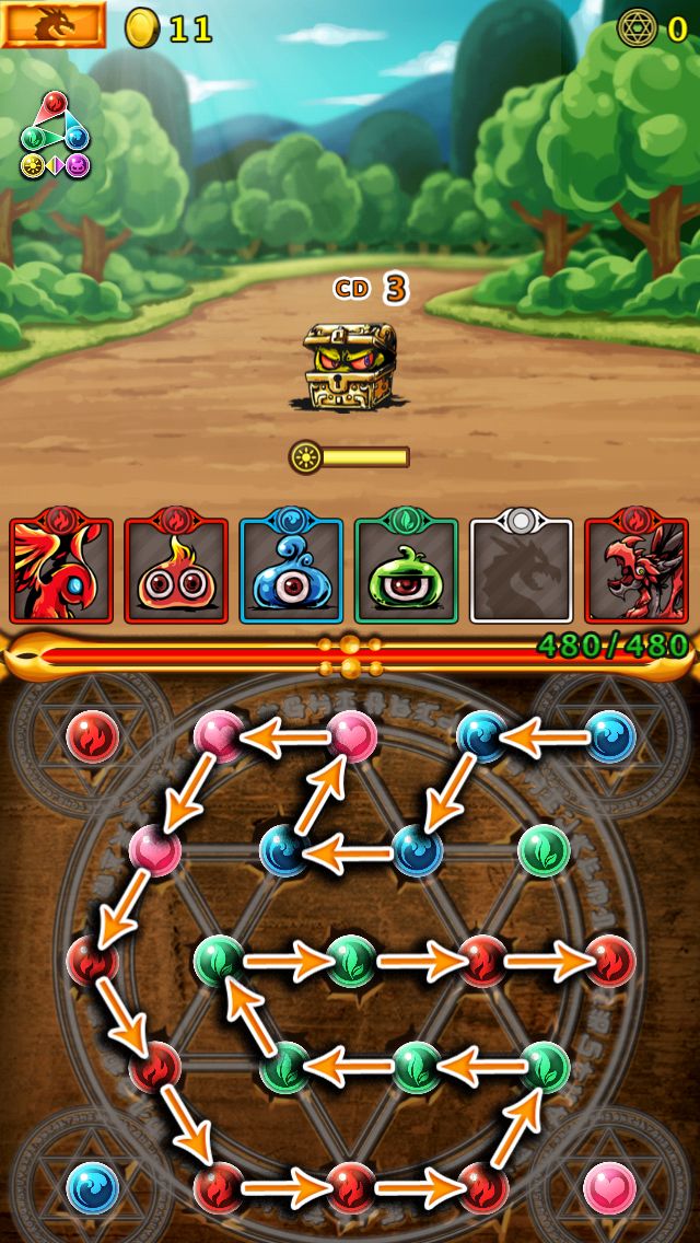 獲得初始魔獸後便會進入教學模式,玩家可以先熟悉一下魔法陣的基本操作。連結兩顆或以上同屬性的寶珠便能啟動魔法陣,對敵人作出攻擊。連結兩組或以上不同屬性的寶珠能發動 Combo 連擊,能大大提高攻擊力。要注意的是連結中的線是不能重疊的,但當連結到另一屬性的寶珠時,之前已連結的線會於一定時間內消失,而連結過的寶珠也會重生。換言之,玩家可以在限時之內作出無限的連擊。