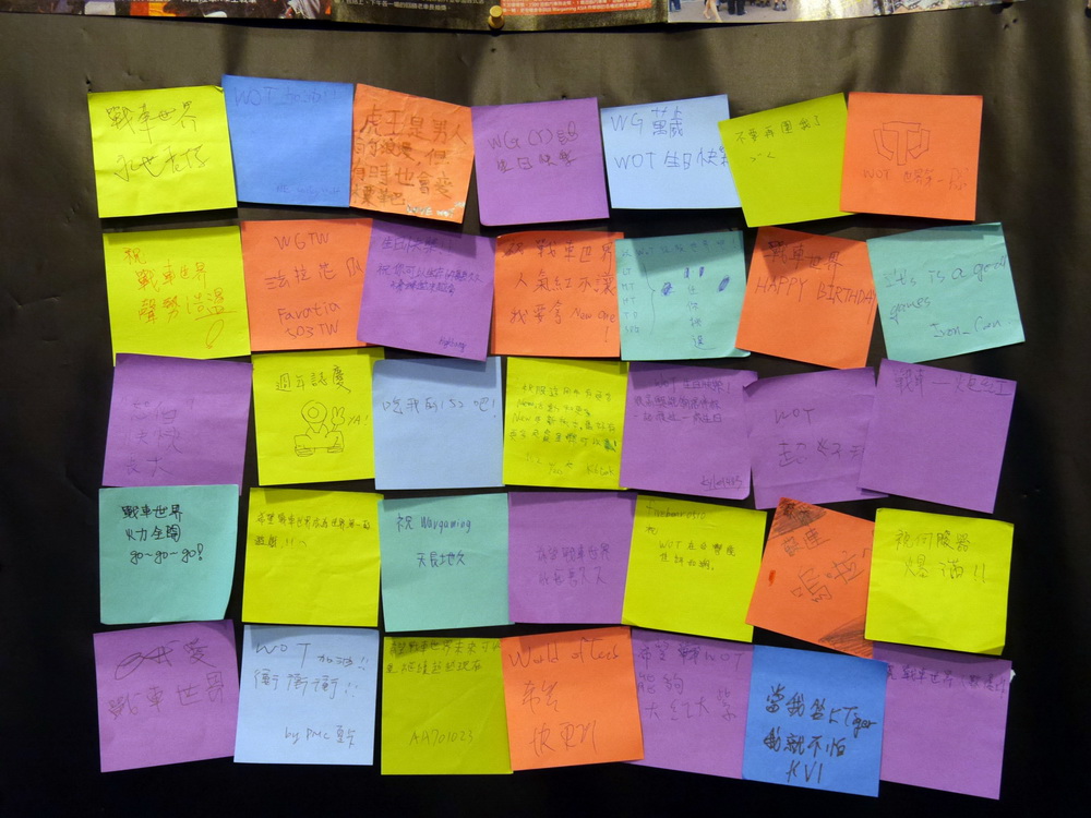 Wargaming 今日也向媒體展示了台北辦公室的空間,可以看到牆上張貼著玩家對他們的留言,會議室中還有員工珍藏的戰車、員工的相關著作,以及 Wargaming 活動製作的手錶等周邊等。