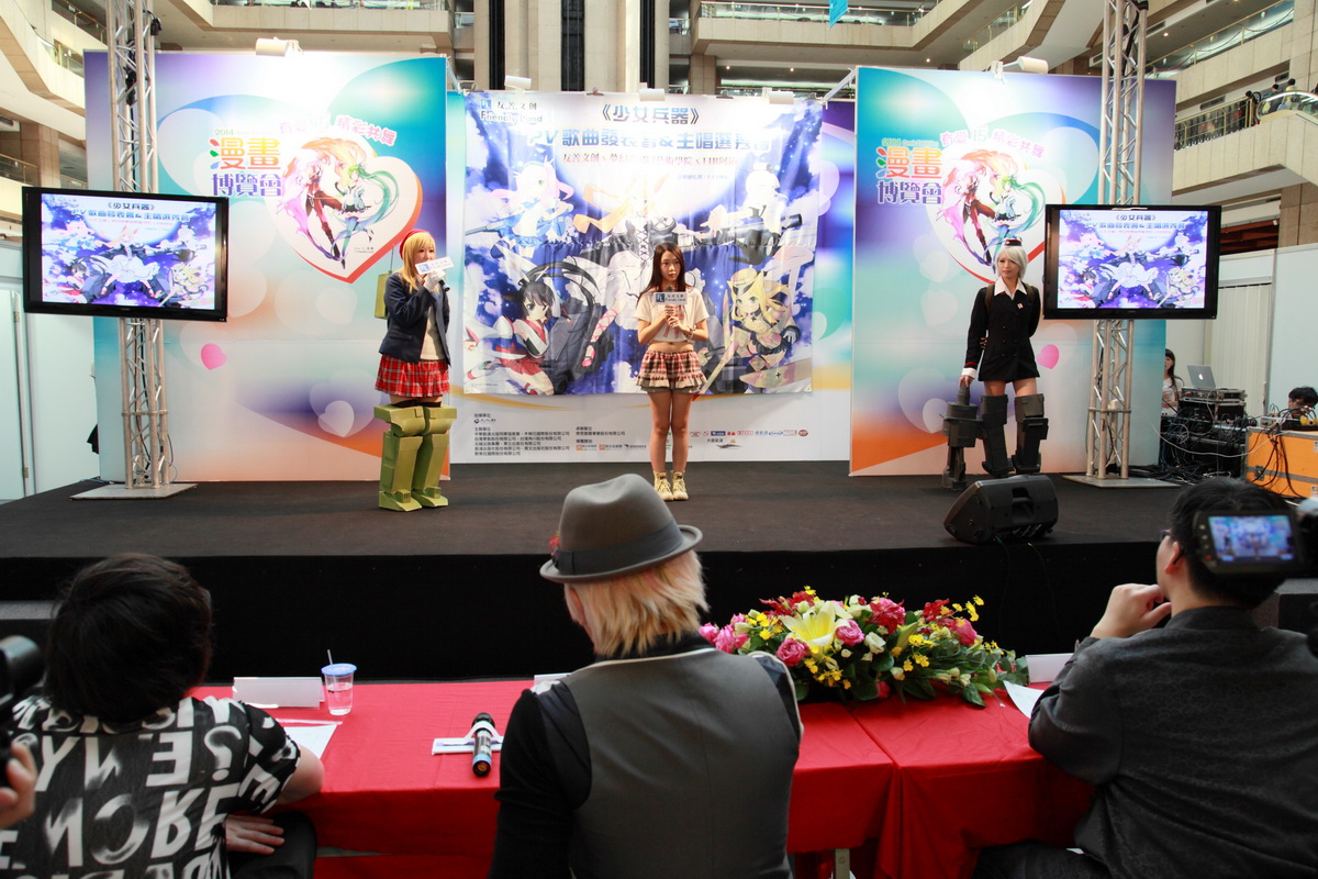 友善文創今(8)日於 2014 年漫畫博覽會 C 舞台舉辦《少女兵器》動畫 PV 女主唱選拔會,由通過初選的參加者們現場演出,並請到友善文創總經理「王士豪」、《少女兵器》原作者「皇宇(ZECO)」、主題曲創作 & 音樂總監「F.I.R 阿沁」以及知名編曲家「小雞」現場評分,來選出最具潛力的明日之星來參與培訓。