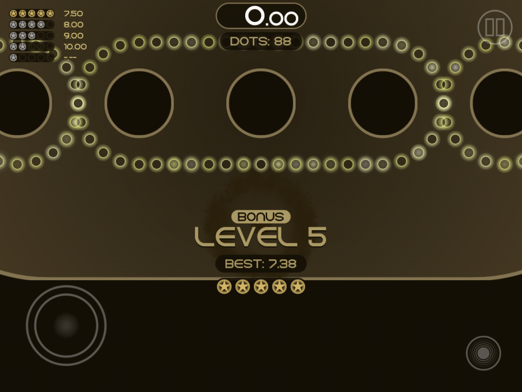 每一大關的第五小關都是獎勵關卡,這個關卡中的黃點都是空心的黃點,吃下去之後不會產生任何紅血球,所以在這一關玩家們可以安心的拚 5 星過關,算是讓技術不好的玩家們練習技術的好關卡。