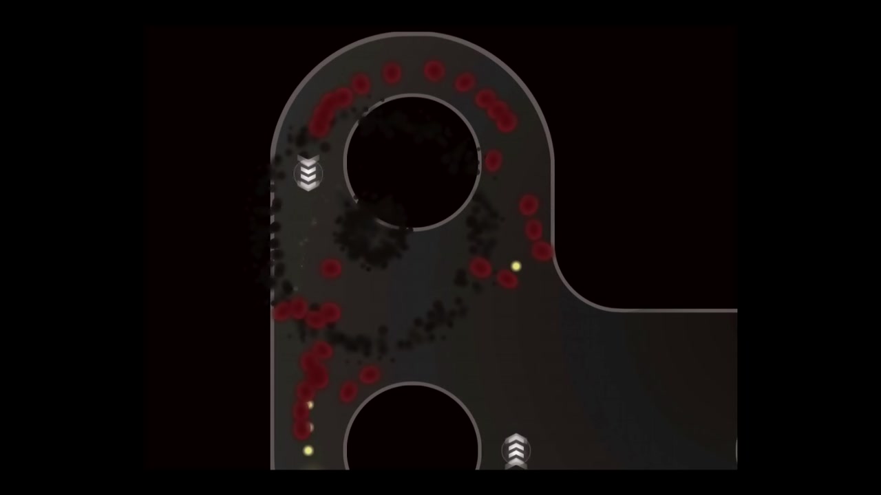 箭頭標誌則是可以讓小蝌蚪短時間內加速,有許多關卡都有這些箭頭標誌讓玩家們能不停地快速衝刺,善用這些加速就能輕鬆在短時間內獲得所有小黃點,不過由於速度非常快,有時候也容易撞上一些陷阱。