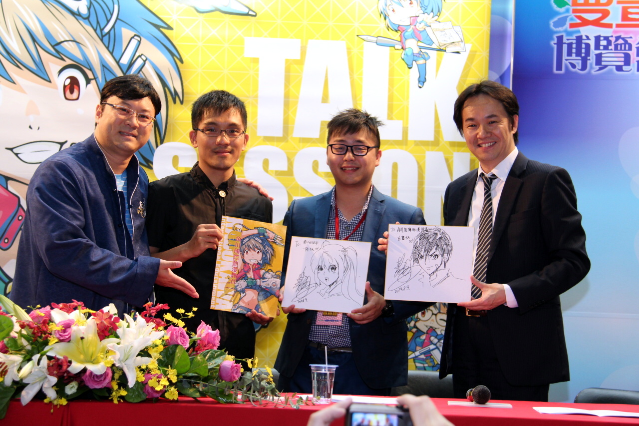 今(9)日,角川國際動漫教育(KADOKAWA International Edutainment)在漫畫博覽會 C 舞台舉行座談會,並邀請到角川國際動漫教育董事長 古賀鐵也、MUGENUP 的 一岡亮大、友善文創總經理 王士豪,以及漫畫家 彭傑上台分享台灣創作心得及未來動漫補習班期許。