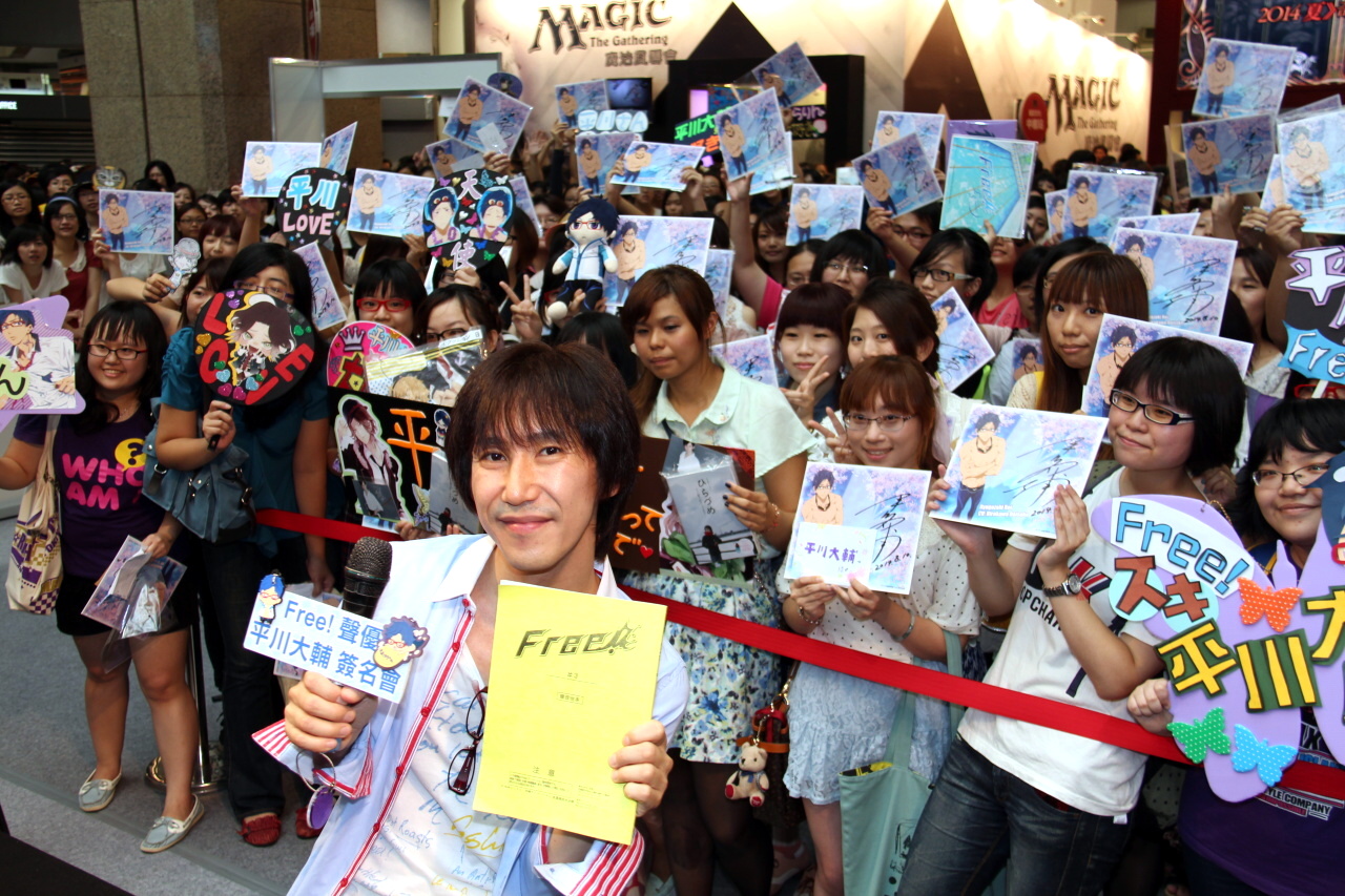 FREE! 男子游泳部》中,飾演龍崎怜的聲優 平川大輔舉行簽名會。在舞台活動中,