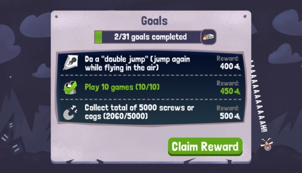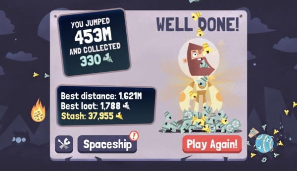 與特殊能力的賣價相比,點數並不是很好賺,而除了在星際間辛苦奔波之外,遊戲目前也提供了 31 個「目標」給玩家挑戰,像是「跳過 1000 顆星球」、「死在 200 到 220 公尺間(怎麼聽起來好悲哀)」之類的,只要達成目標就能一口氣獲得大量的點數!