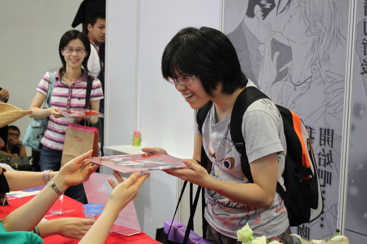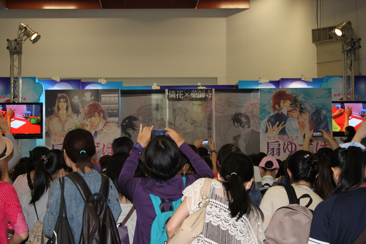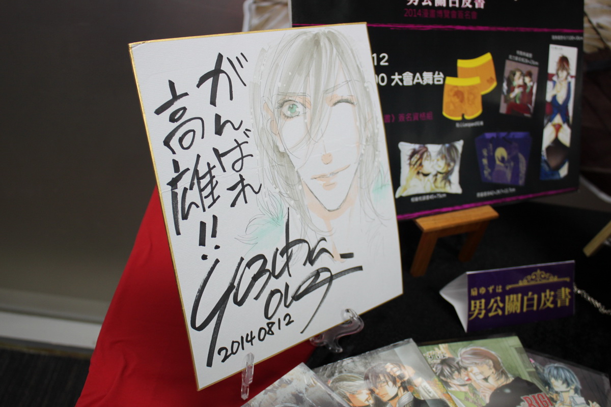 今(12)日漫畫博覽會中,長鴻出版社力邀請到以 BL 作家出道至今 15 年的扇ゆずは老師來台舉辦簽名會,別於一般 BL 漫畫唯美的故事劇情,老師在《男公關白皮書》一作裡,扇老師的筆下許多角色都很硬派,各種不同個性強烈的角色配對,以及極具張力的劇情鋪陳,都是作品的特色。