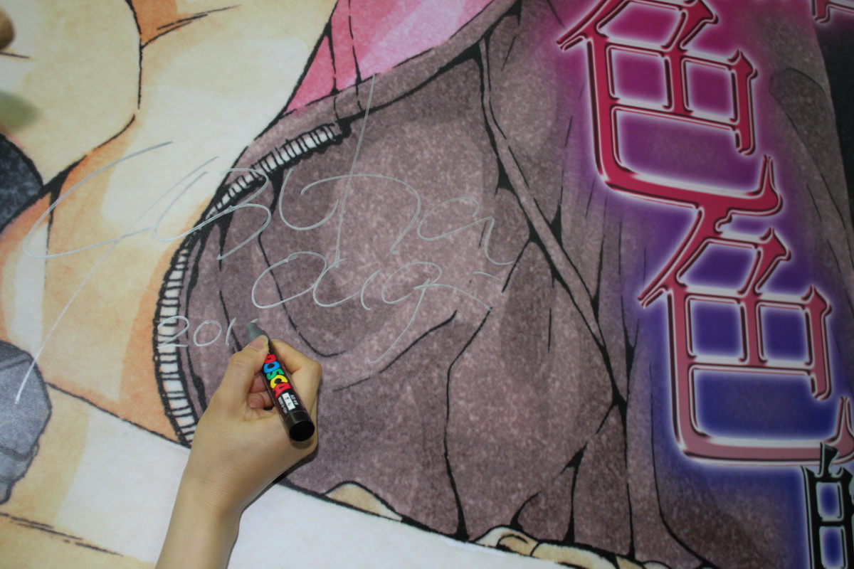本次扇老師也參與了「為高雄祈福」祈福手繪板的愛心義賣活動,希望能在本次高雄氣爆事件盡棉薄之力,一起為高雄的朋友們祈福、加油。而在簽名會之前,扇老師也接受了媒體的採訪,聊聊在創作過程、以及來到台灣的感想(以下問答整理扇ゆずは簡稱為「扇」)。
