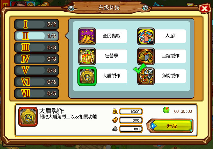 為何初期強調宅邸 2 級的重要性?當玩家的宅邸到達 2 級後,便可提升「巨錘製作」、「大盾製作」與「漁網製作」三項科技,有了這三項科技的加成,玩家在酒館刷新角鬥士時,便有機會出現這三個職業的角鬥士,有了更多職業角鬥士可以搭配,相信玩家不論面對多艱難的戰役,均可利用不同職業的特性來輕鬆應戰。