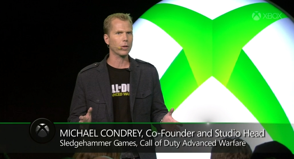 同時,發表會之中也請到了開發工作室 Sledgehammer GamesGlen 的 CEO Glen Schofield 以及總監 Michael Condrey 登台,來宣布《決勝時刻:先進戰爭》將會為玩家帶來真正的次世代遊戲體驗,並帶領《決勝時刻》進入新的次元,並強調本作的首個 DLC 將在 Xbox One 率先登場。