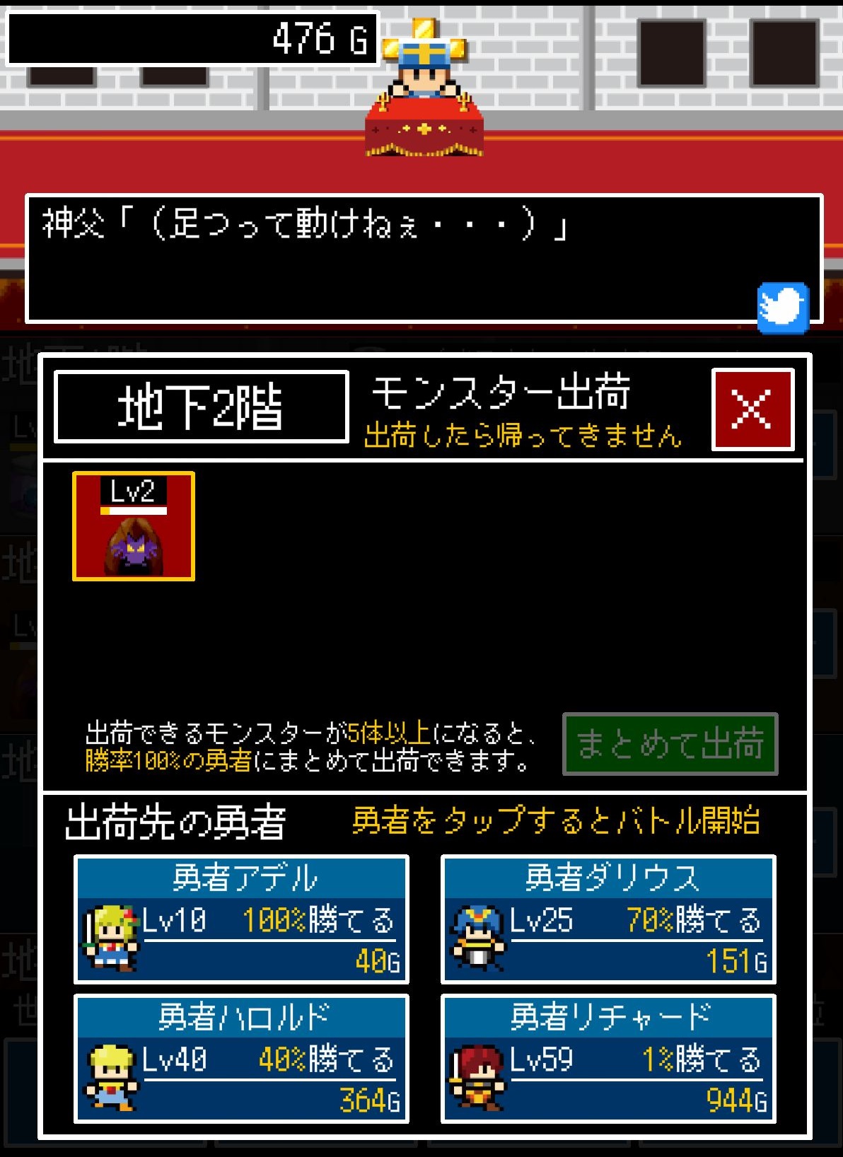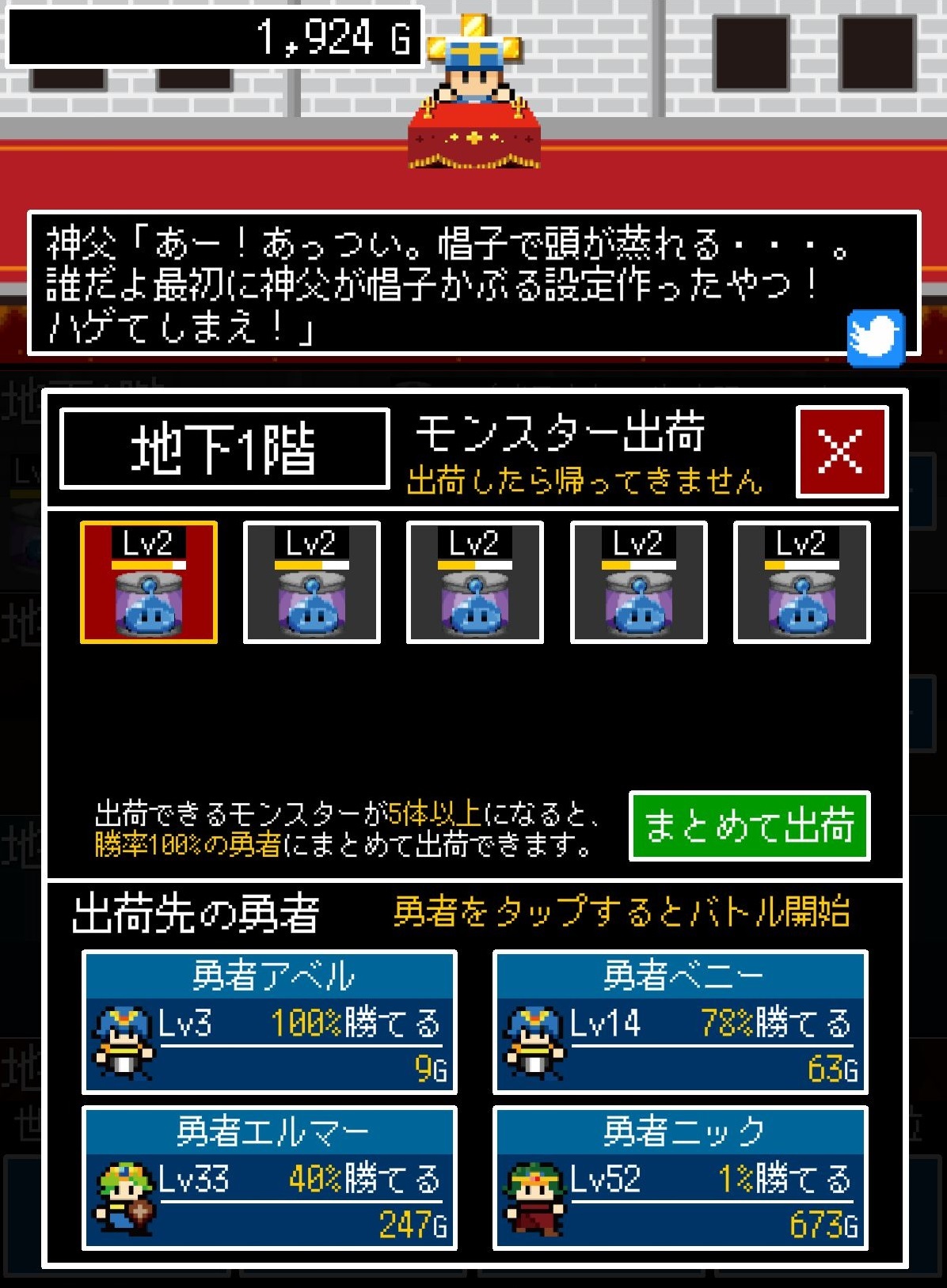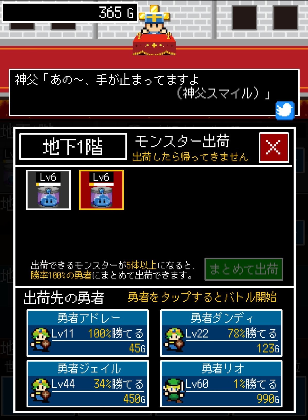 但如果神父是一個很愛錢的人又覺得這樣賺錢太慢的話會怎樣呢?《腹黑神父(暫譯,日文原名:神父「モンスター生産始めました」勇者「・・・」)》就是這種獨特主題的放置型遊戲,在遊戲中玩家要生產「魔物」去打倒勇者,讓勇者們拖著棺材回到教會花錢復活,只要能打倒越多越強的勇者,就可以大撈一筆!